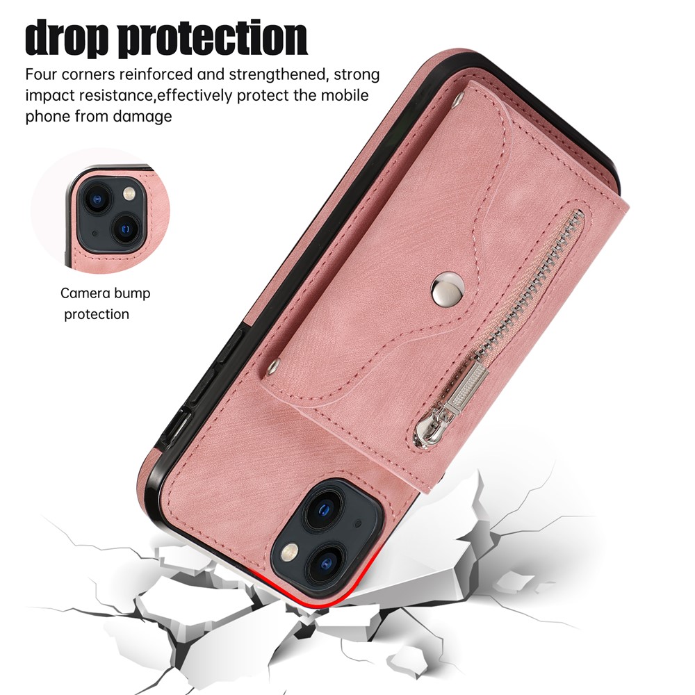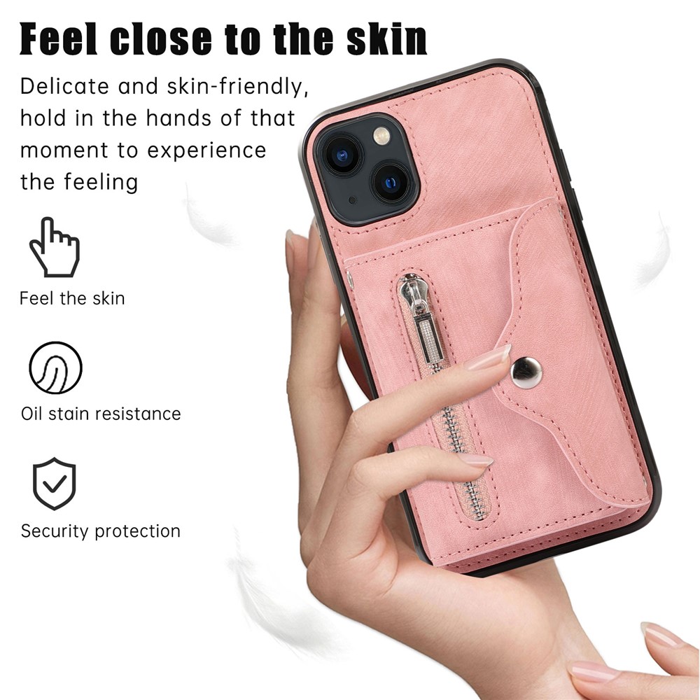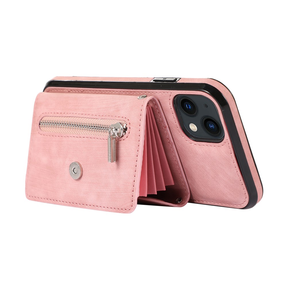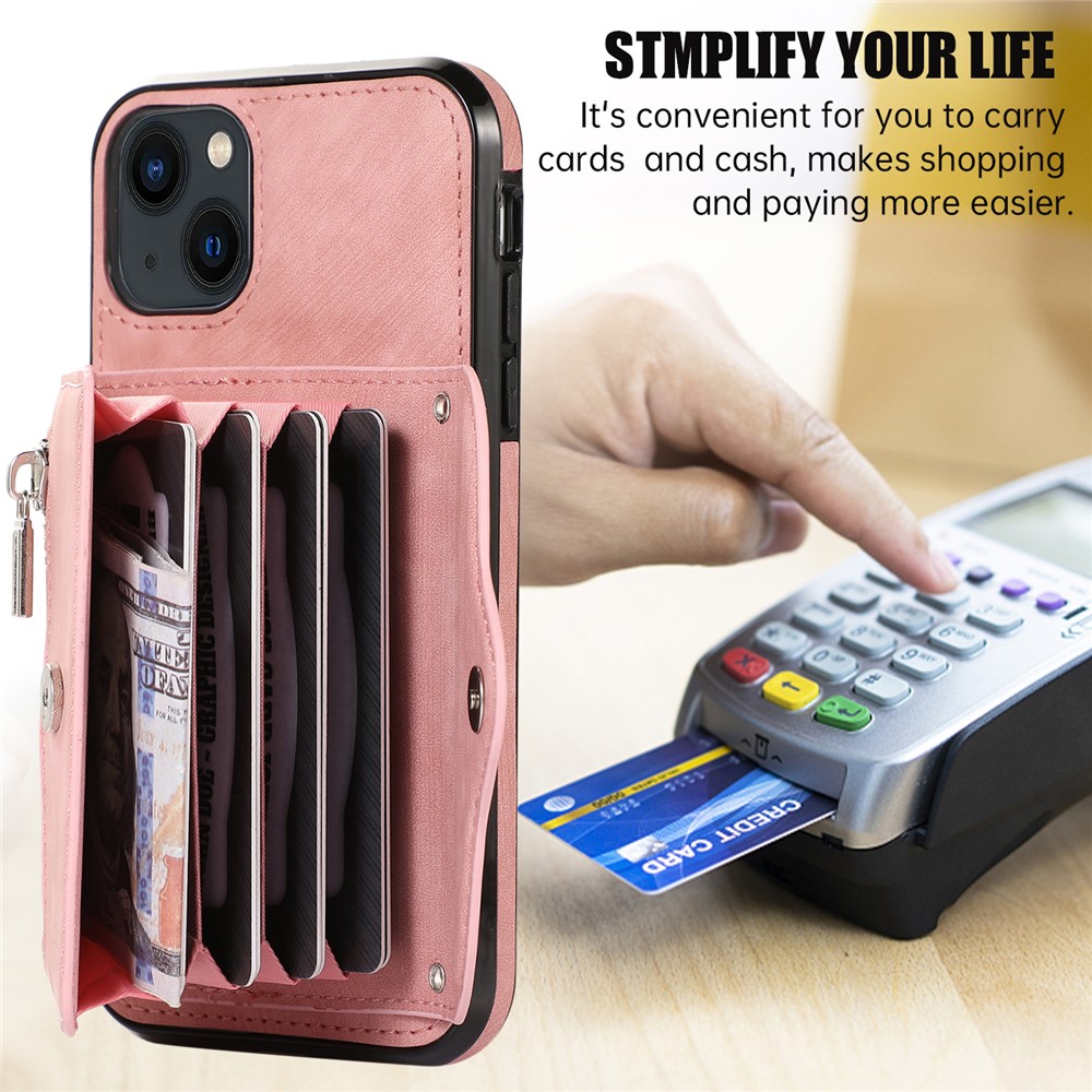 - Card Holder Design Features a multi-slot accordion-style card holder with a zipper and snap button closure, providing organized storage for cards, cash, and coins