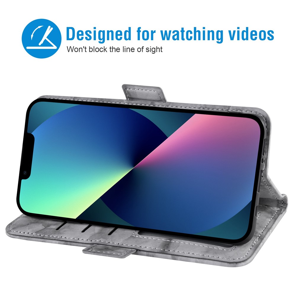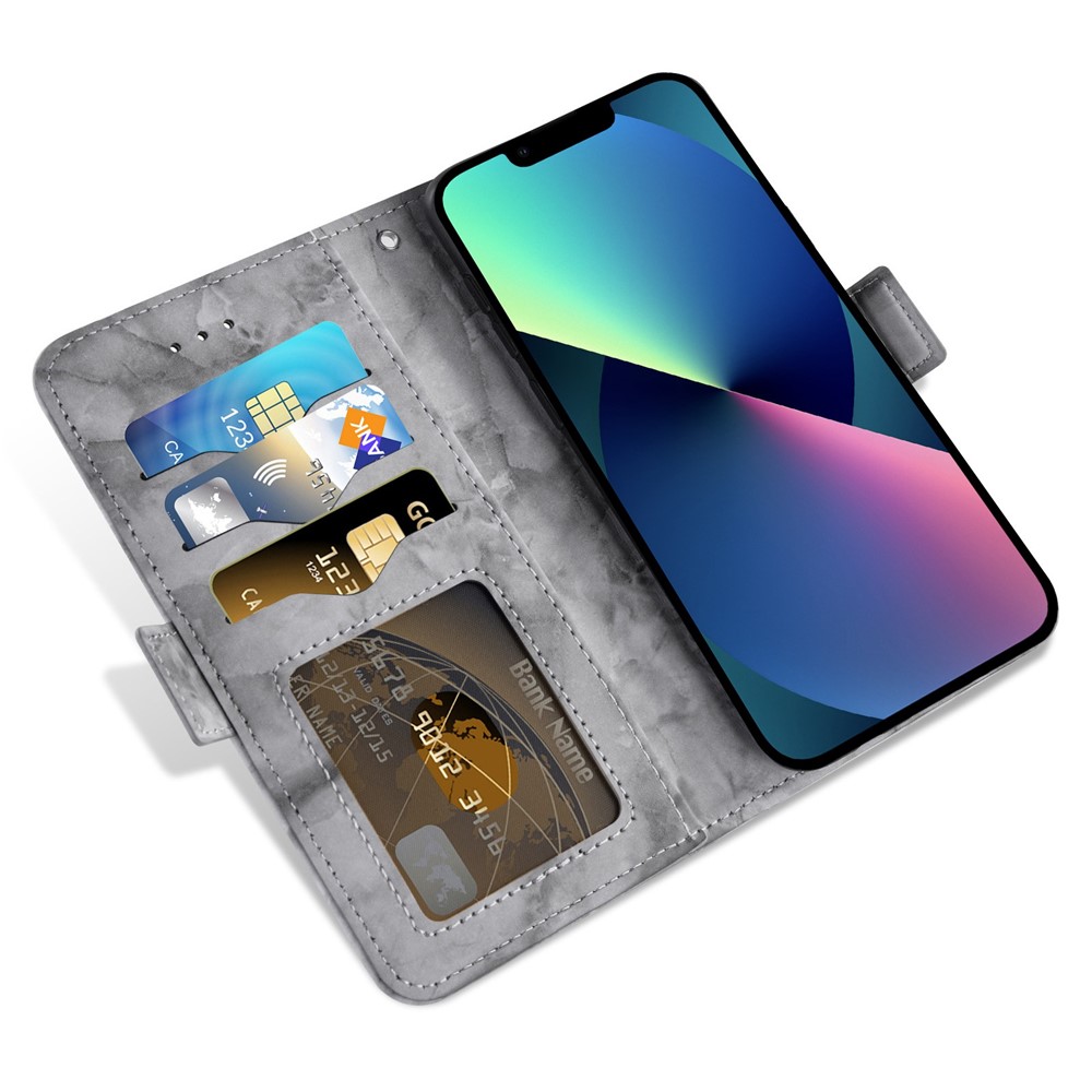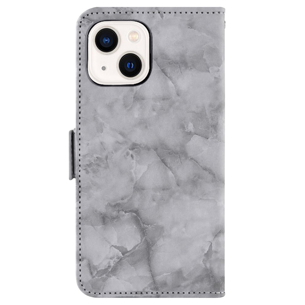 For iPhone 13 mini 5.4 inch Cellphone Case, Marble Pattern Anti-collision Dual Magnetic Clasp PU Leather Stand Flip Wallet Cover – Grey