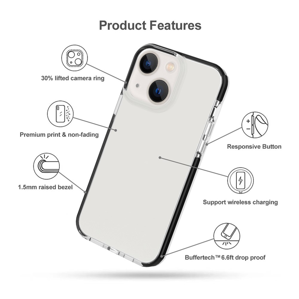 For iPhone 13 mini 5.4 inch Slim Fit Shock Absorption Phone Shell Black Frame Frop Protection Clear TPU Panel Phone Case