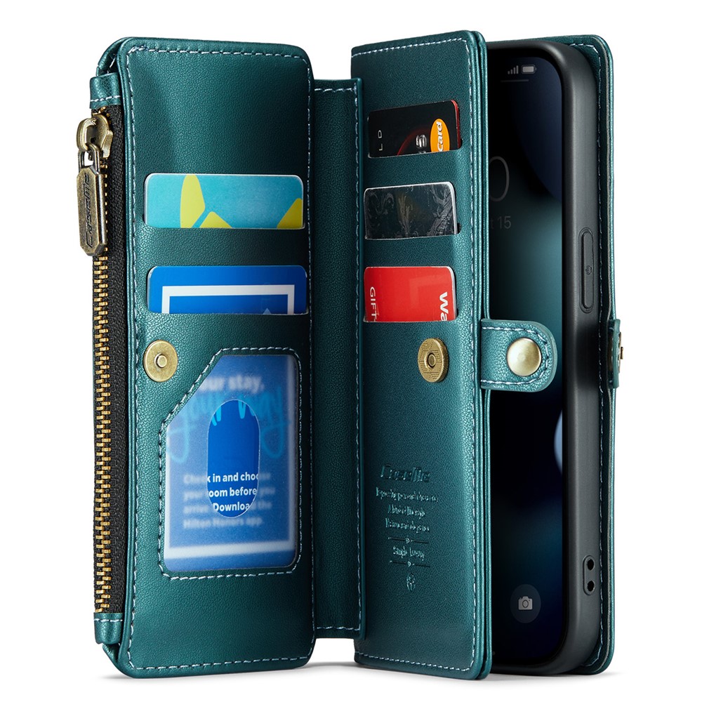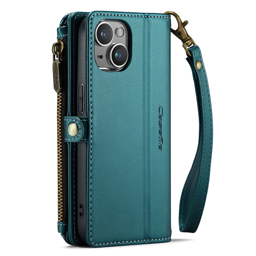 For iPhone 13 mini Leather Case CASEME C36 Zipper Multiple Card Slots Phone Cover with Straps – Green