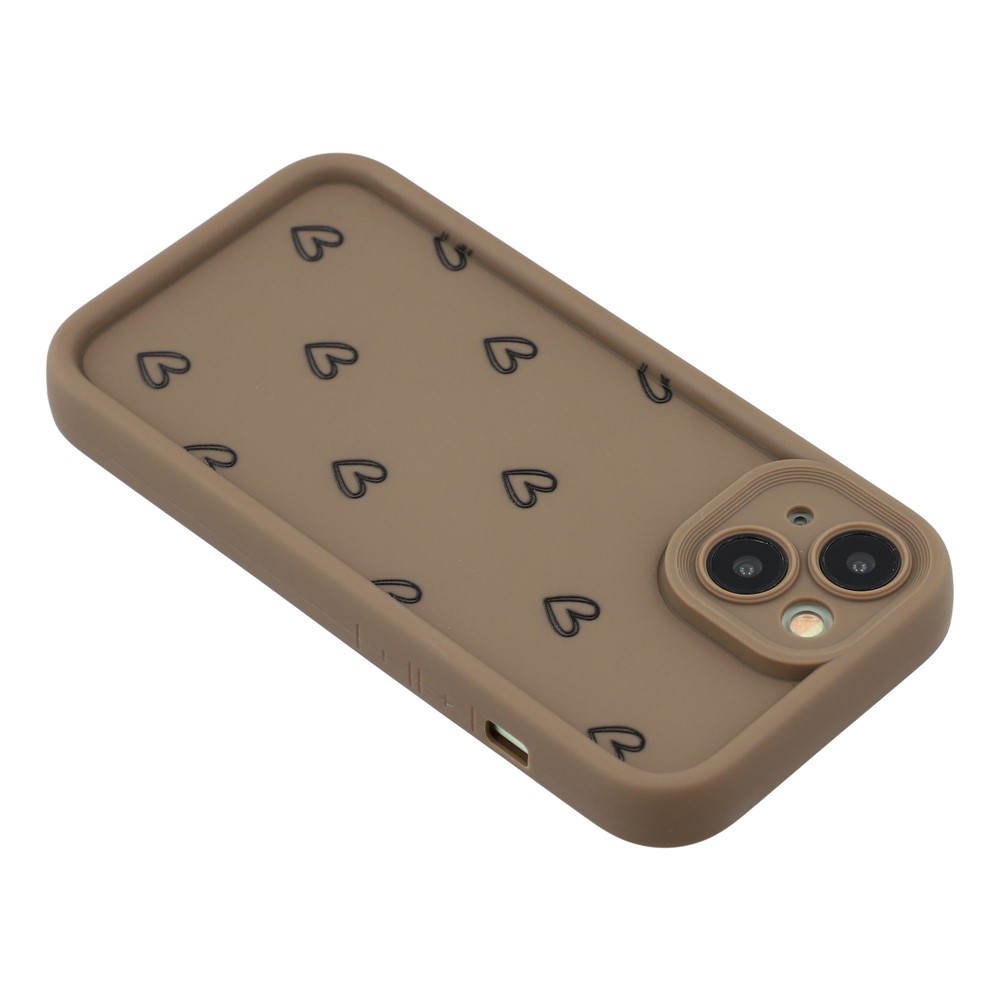 For iPhone 13 mini Phone Case Heart Pattern TPU Shockproof Protective Cover – Brown