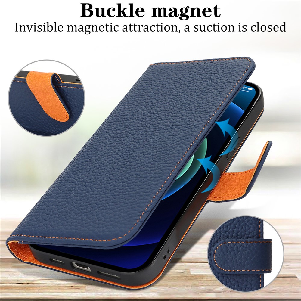 - Premium Material Combination Crafted with a litchi textured genuine cow leather exterior for a premium look and feel, paired with a flexible TPU inner shell that offers excellent shock absorption and long-lasting protection