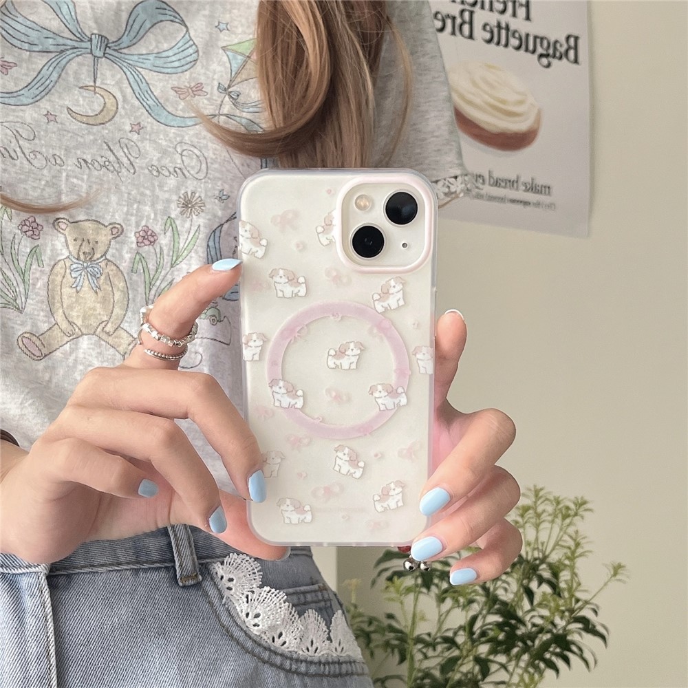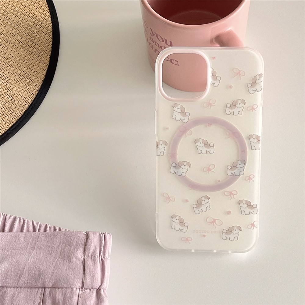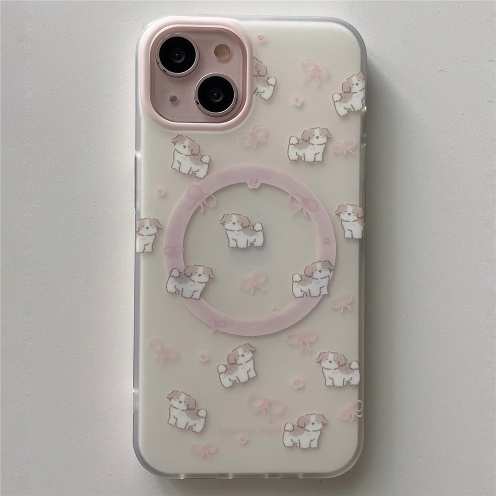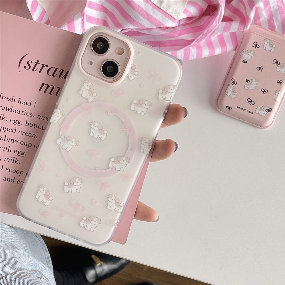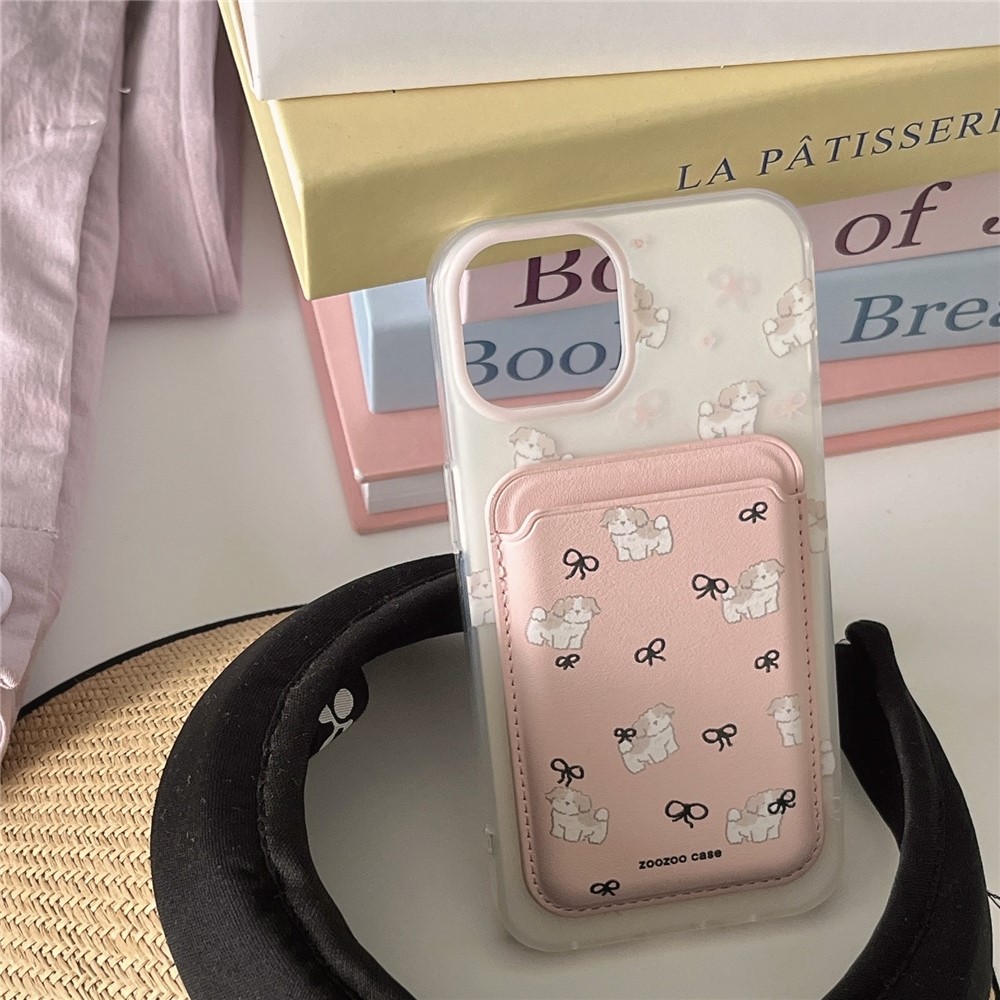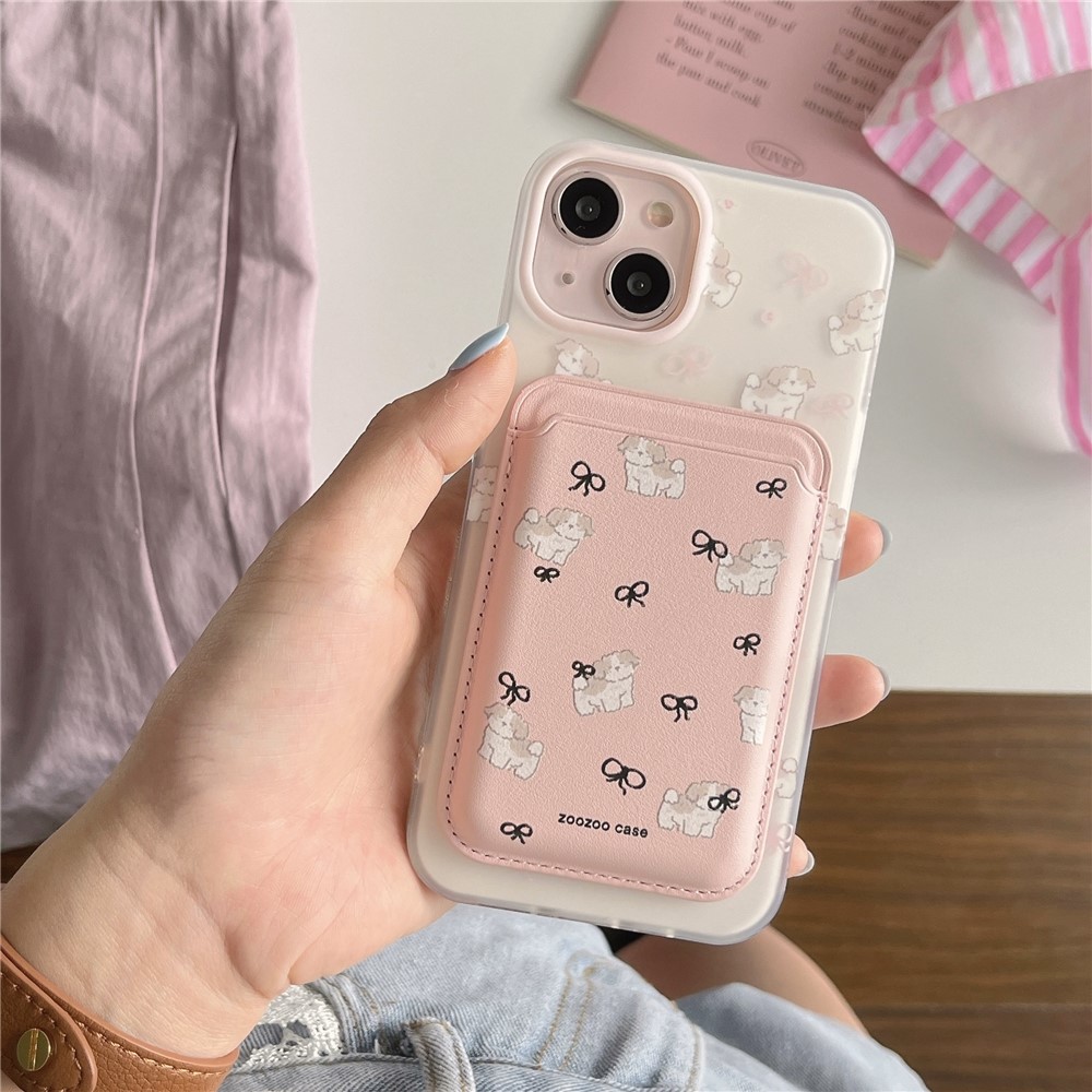 For iPhone 13 Mobile Phone Case Cartoon Dog IMD Detachable Magnetic Card Bag TPU Phone Cover