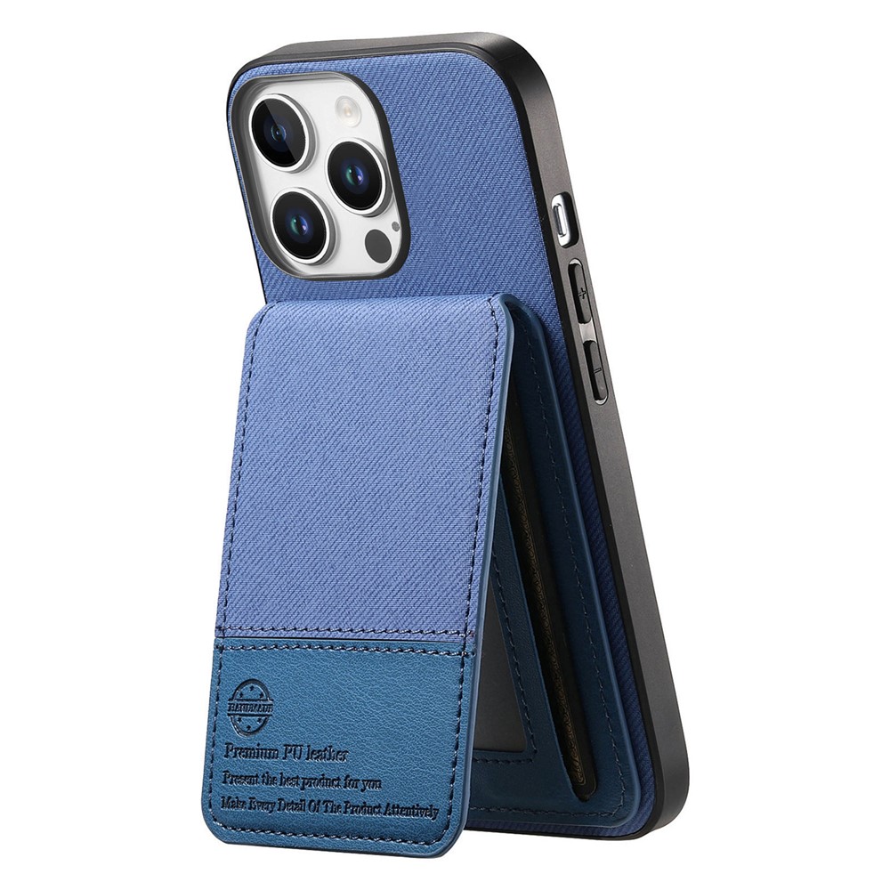 For iPhone 13 Pro 6.1 inch Case Cloth Texture Leather + PC + TPU RFID Blocking Phone Cover with Card Holder – Blue