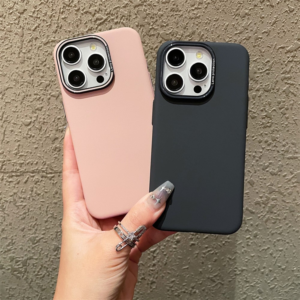 • For iPhone 13 Pro 6.1 inch Phone Case Matte Metal Lens Frame PC Cover Wholesale Mobile Supplier - Pink