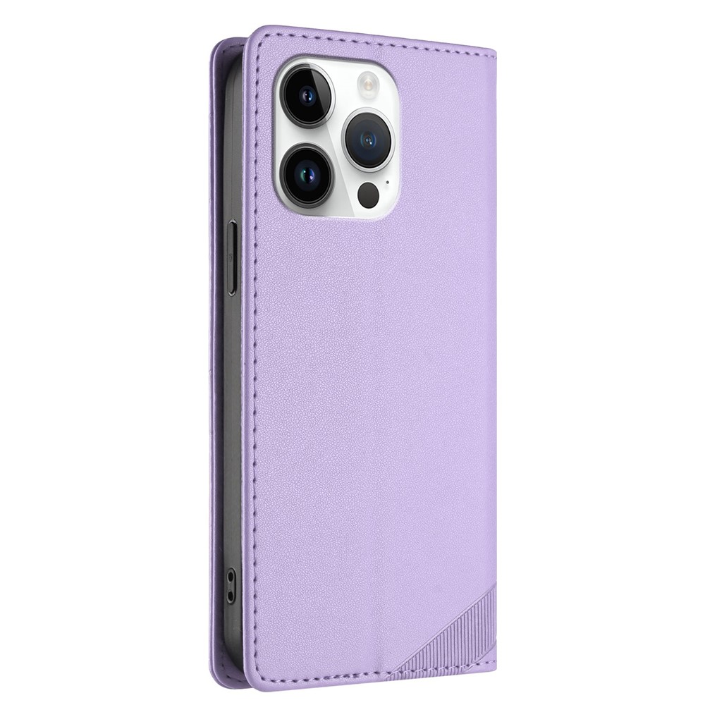 For iPhone 13 Pro 6.1 inch Phone Cases Punk Style Imprinted Wallet Stand Leather Cover – Light Purple