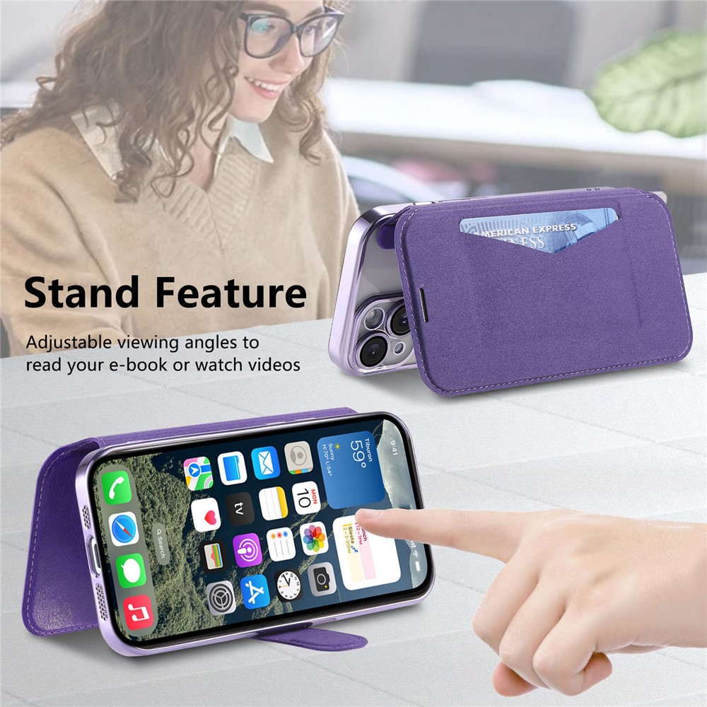 For iPhone 13 Pro Case Compatible with MagSafe Detachable Leather Phone Cover with Lens Film - Light Purple