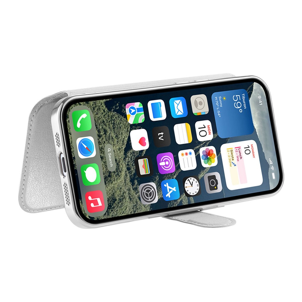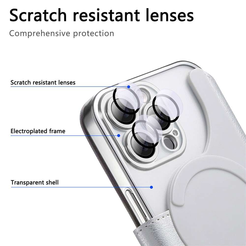 For iPhone 13 Pro Case Compatible with MagSafe Detachable Leather Phone Cover with Lens Film - Silver