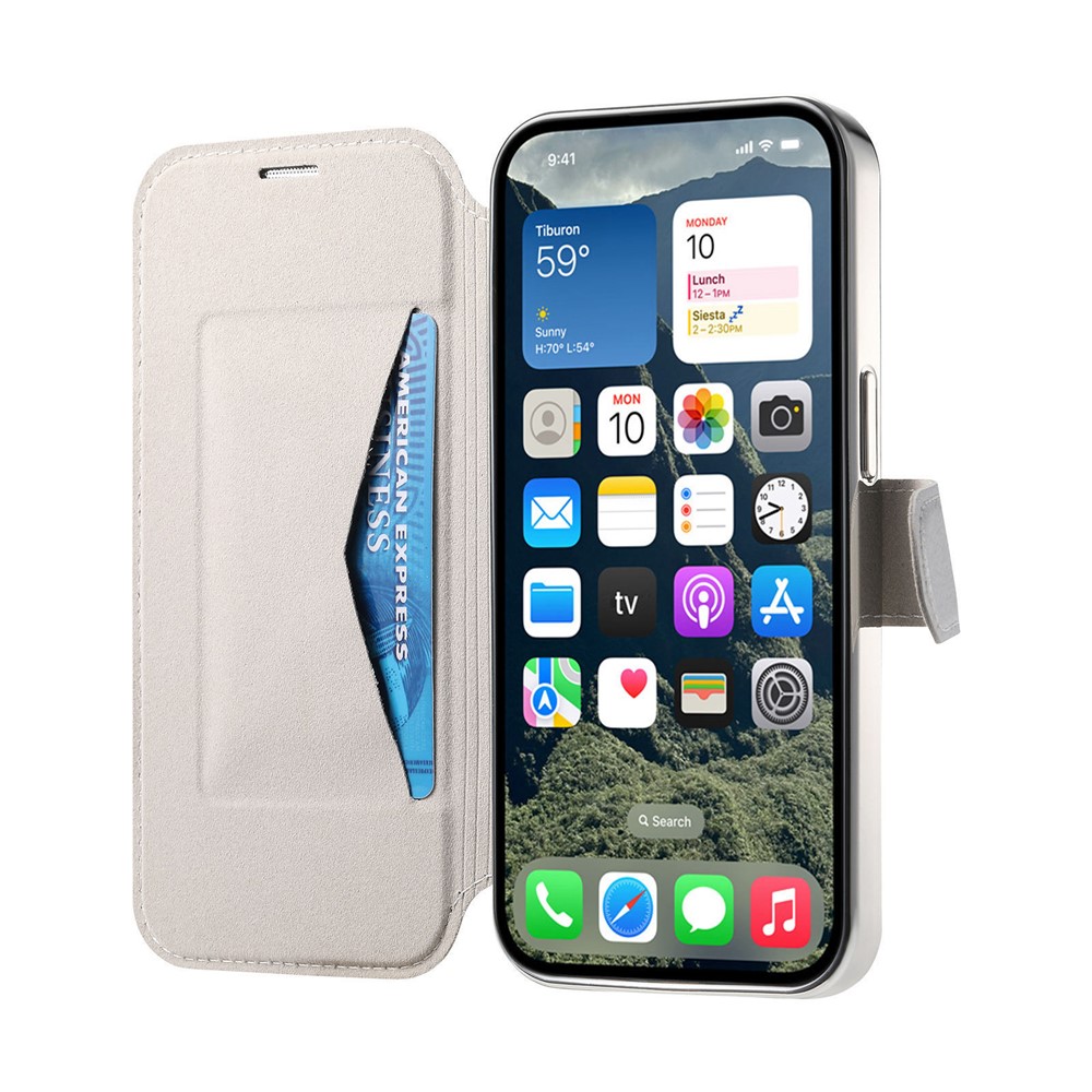 For iPhone 13 Pro Case Compatible with MagSafe Detachable Leather Phone Cover with Lens Film – Silver