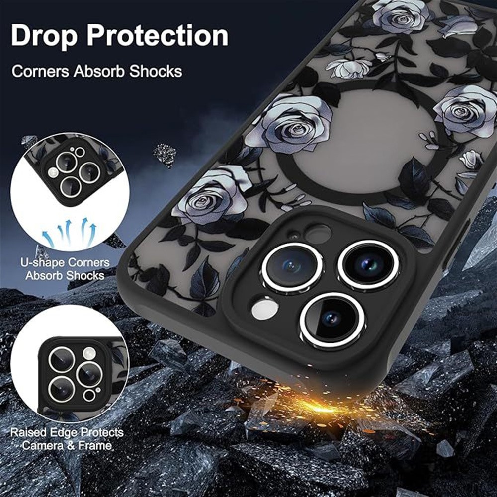 For iPhone 13 Pro Case Compatible with MagSafe Rose Flower Pattern PC + TPU Phone Cover