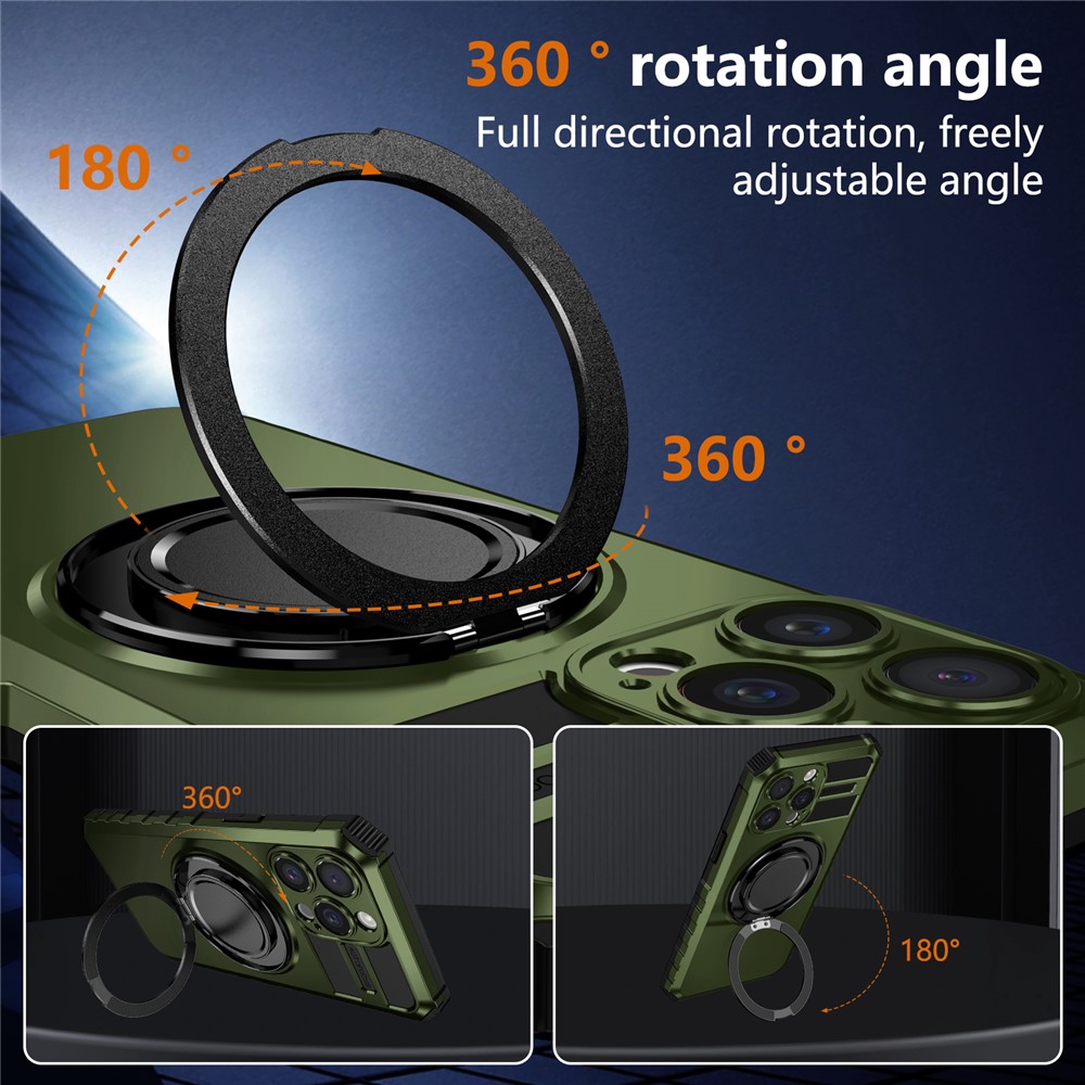 - 360-Degree Rotating Magnetic Kickstand: Features a 360-degree rotating metal ring kickstand, allowing you to adjust the stand to any angle for the best hands-free viewing experience