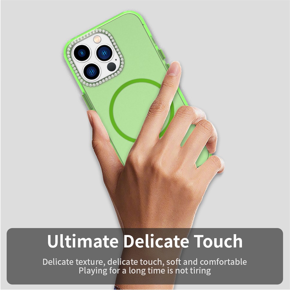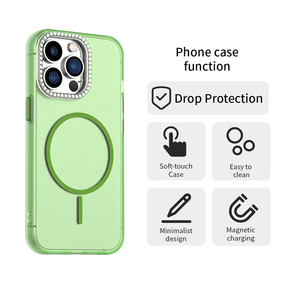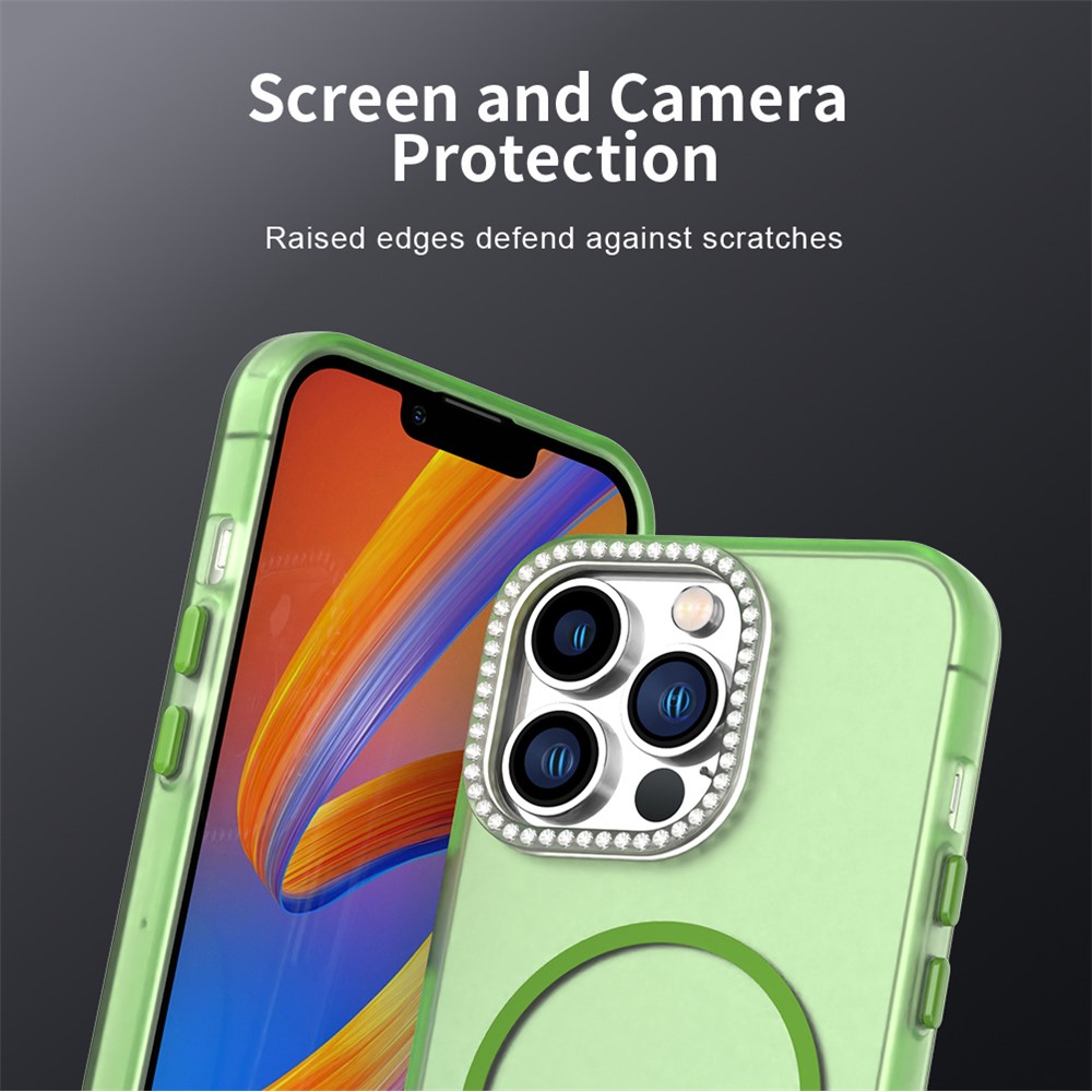 - Elegant Rhinestone Lens Frame Decorated with sparkling rhinestones around the camera lens frame for a touch of glamour and added lens protection