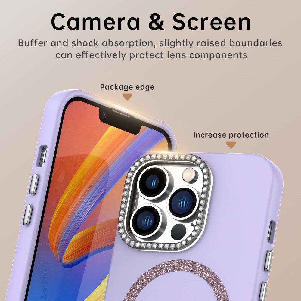 - Rhinestone Lens Frame The lens frame is adorned with sparkling rhinestones, adding a luxurious and eye-catching touch to your phone while protecting the camera