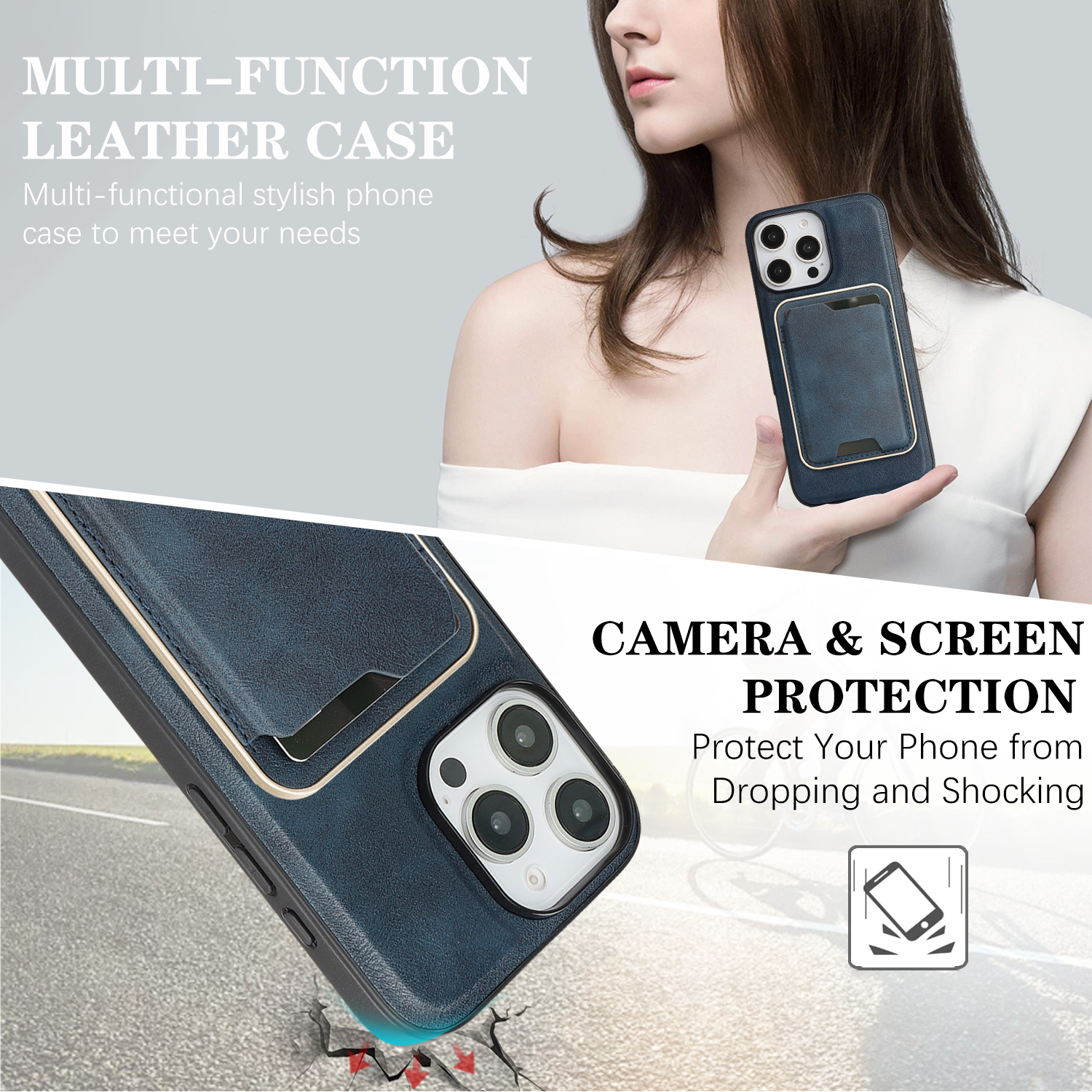 For iPhone 13 Pro Case Compatible with MagSafe Ultra Thin Card Holder PU Leather Coated TPU Cover – Blue