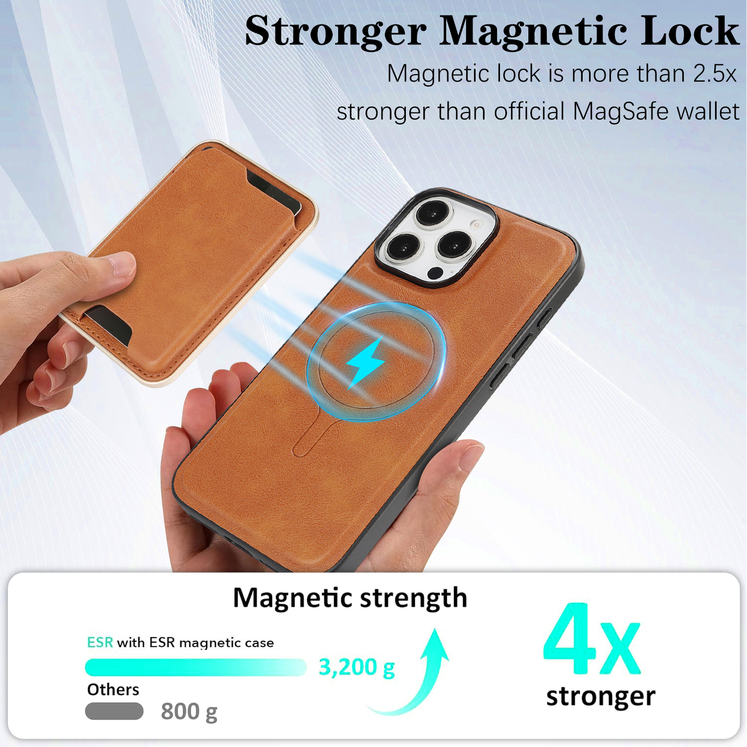 - Powerful MagSafe Compatibility This ultra-thin leather case features enhanced magnetic strength, over 2.5 times stronger than for official MagSafe wallet, ensuring secure attachment and compatibility with MagSafe accessories and wireless charging.