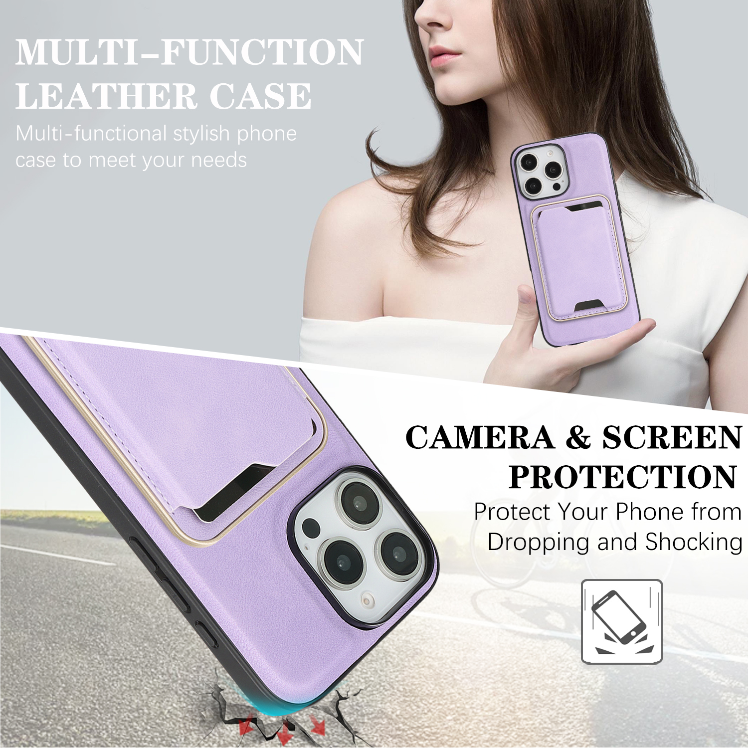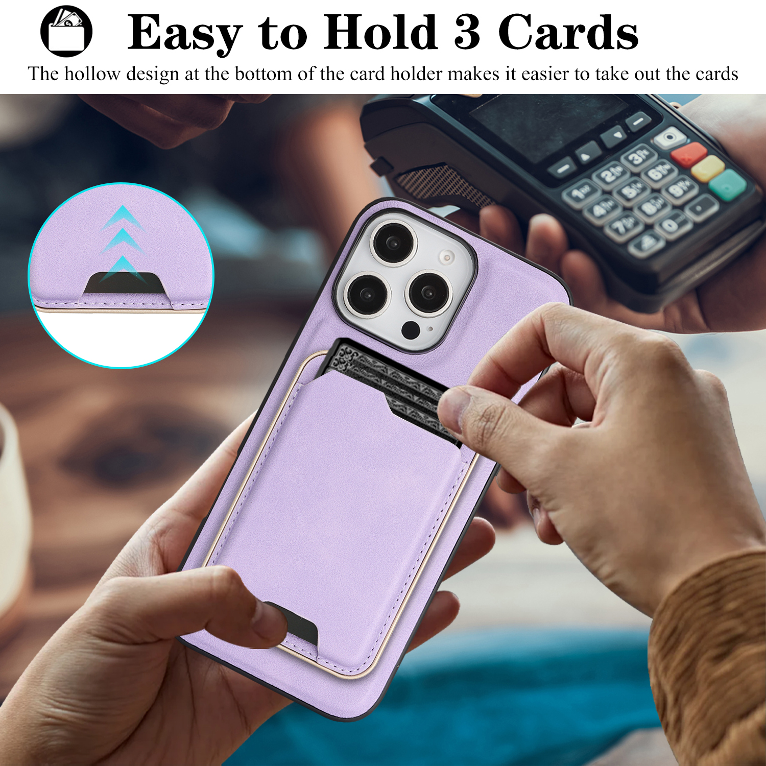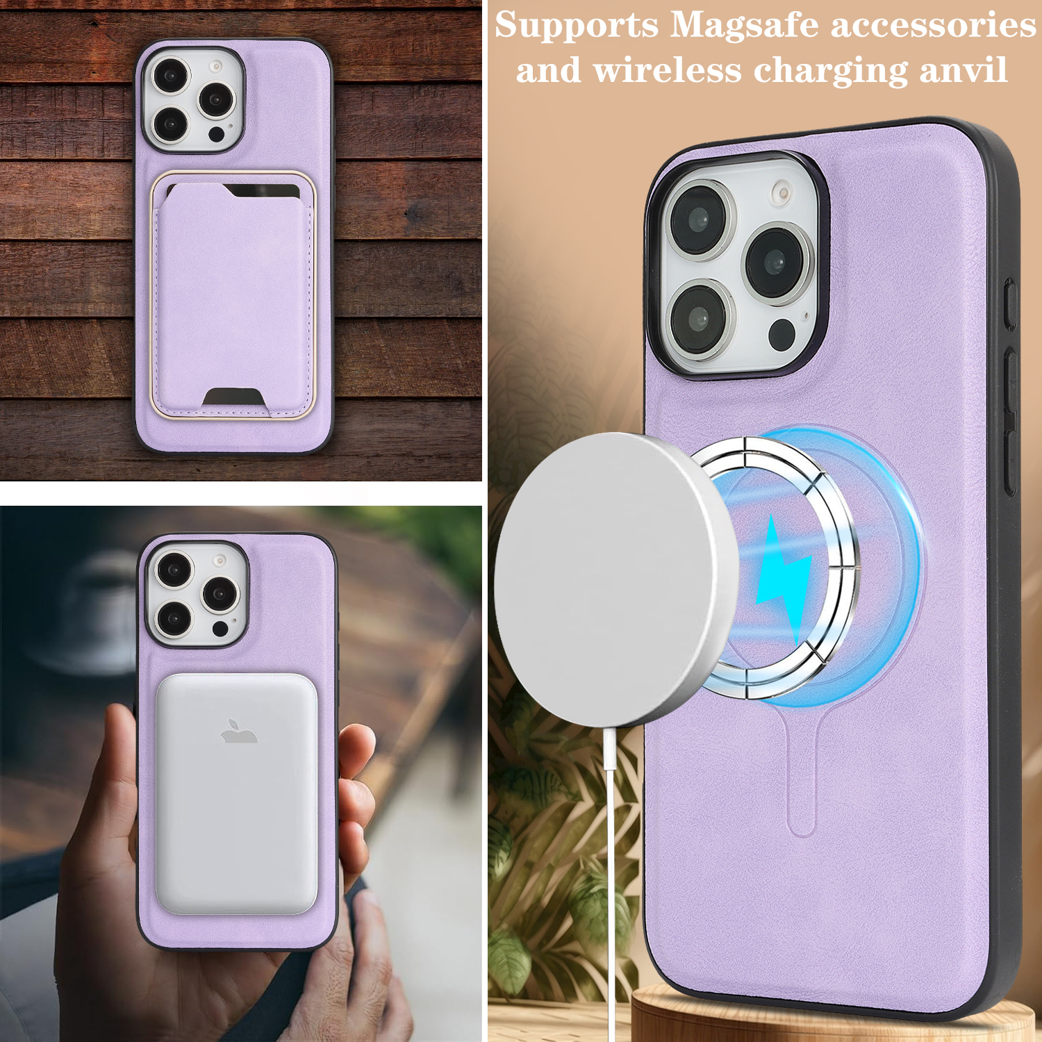 For iPhone 13 Pro Case Compatible with MagSafe Ultra Thin Card Holder PU Leather Coated TPU Cover – Purple