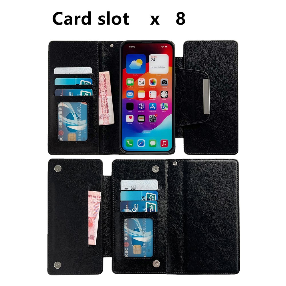 - Versatile Wallet Phone Case This leather wallet-style phone case features 7 card slots and 1 cash slot, allowing you to store your credit cards, ID cards, cash, and some notes