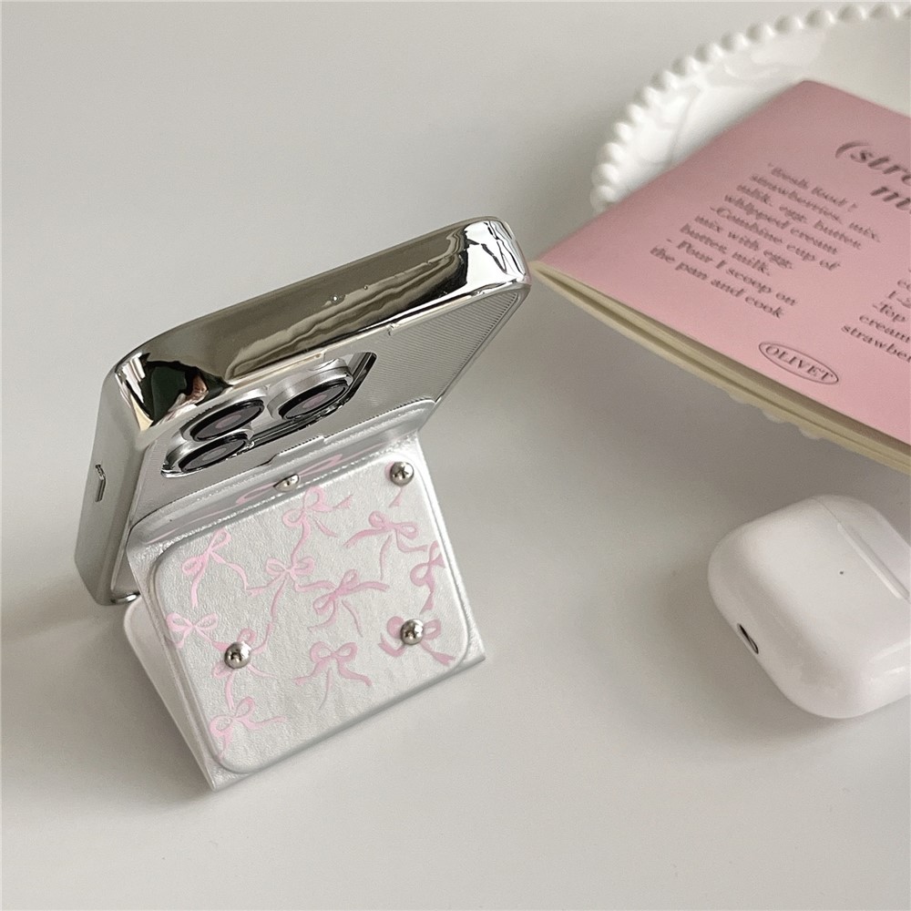 - Stylish flip phone case featuring bowknots and electroplating design, adding a feminine and elegant touch