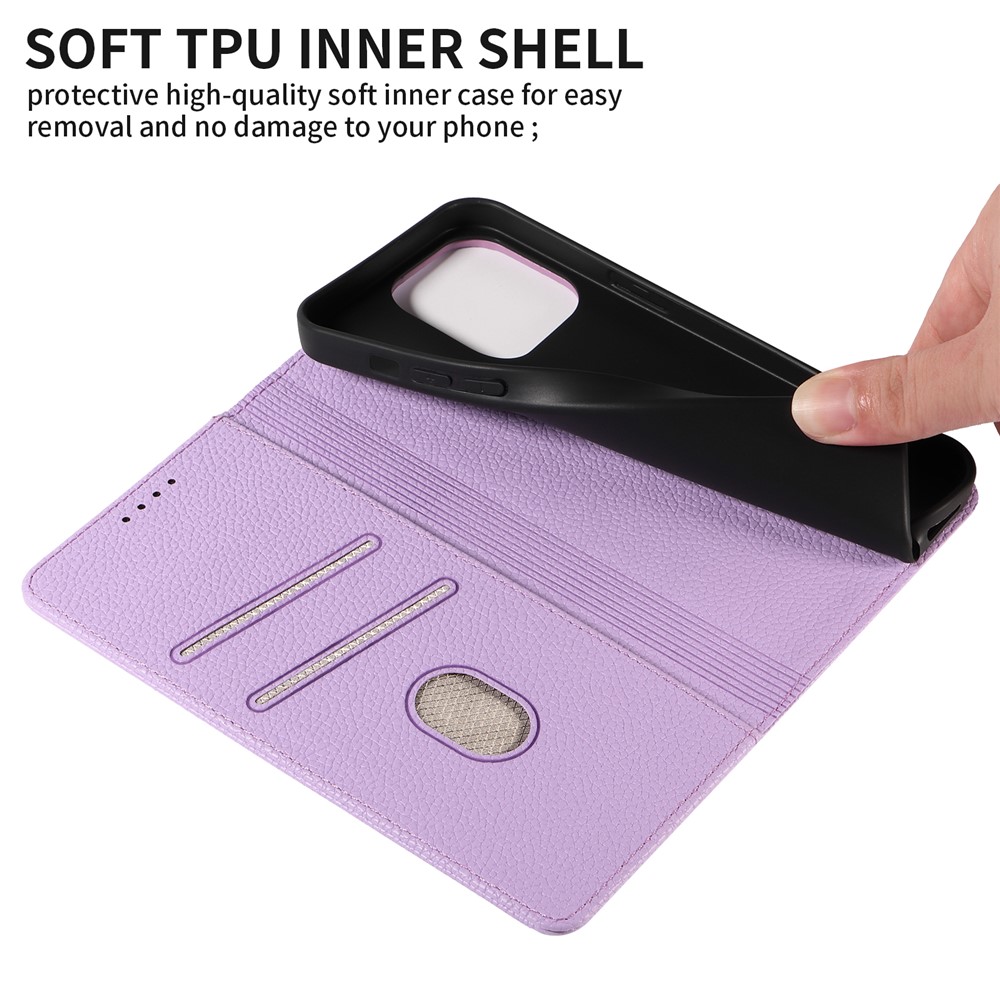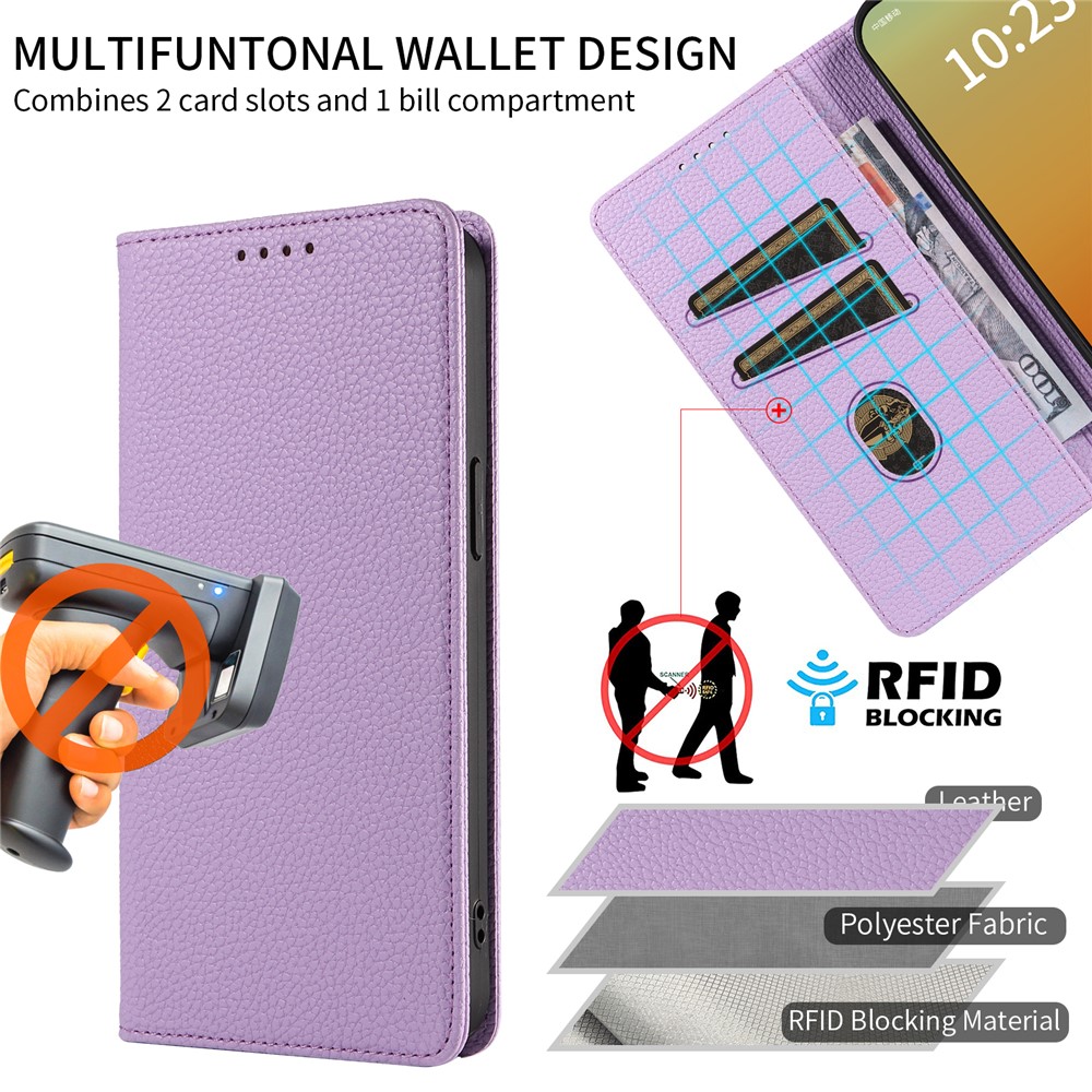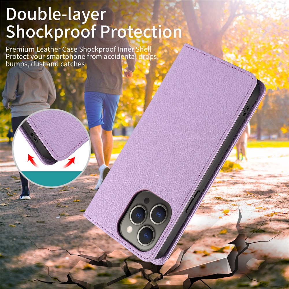 For iPhone 13 Pro Case RFID Blocking Strong Magnetic Leather Wallet Phone Cover – Purple