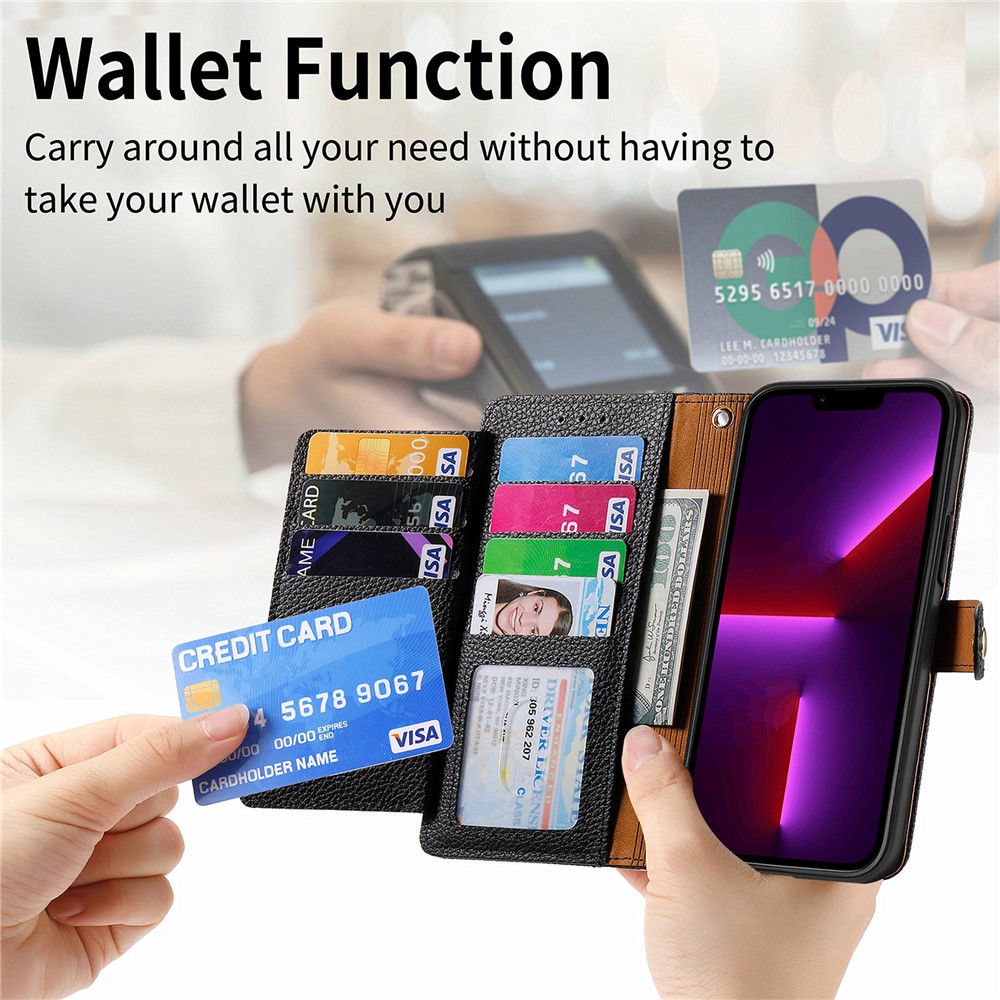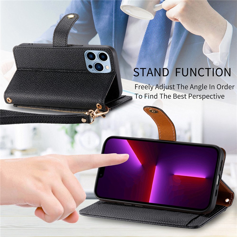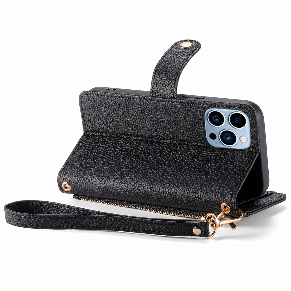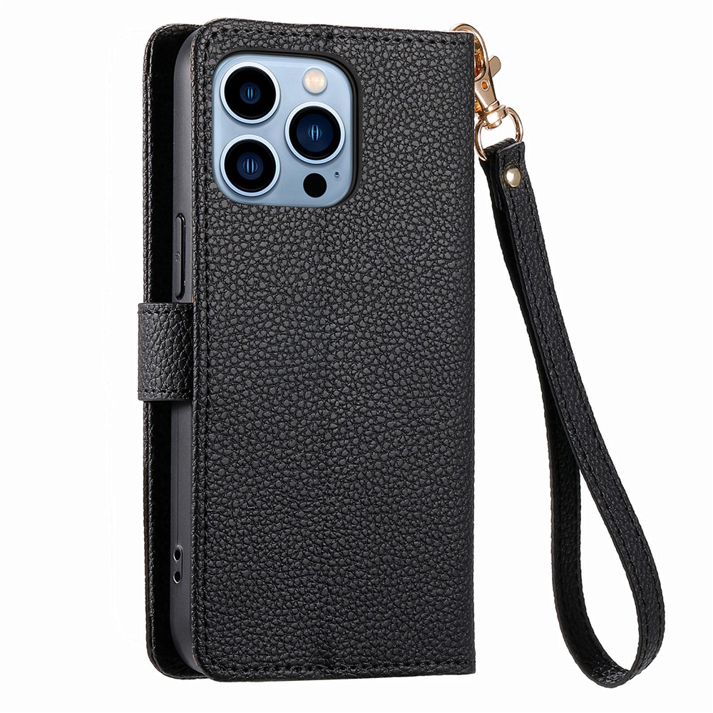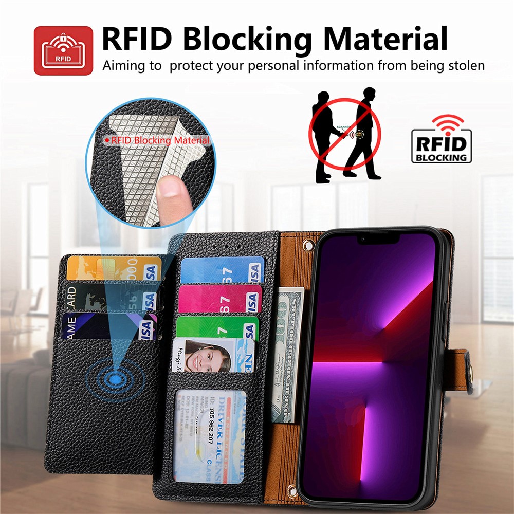 For iPhone 13 Pro Case RFID Blocking Zipper Leather Phone Cover with Wallet Card Slots – Black