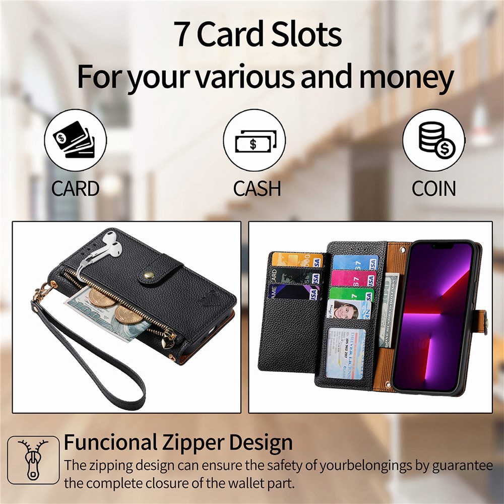 - Convenient Storage Solutions Designed with a zipper pocket, inner card slots, and a cash compartment, it provides ample space for carrying cash, cards, coins, and other essentials