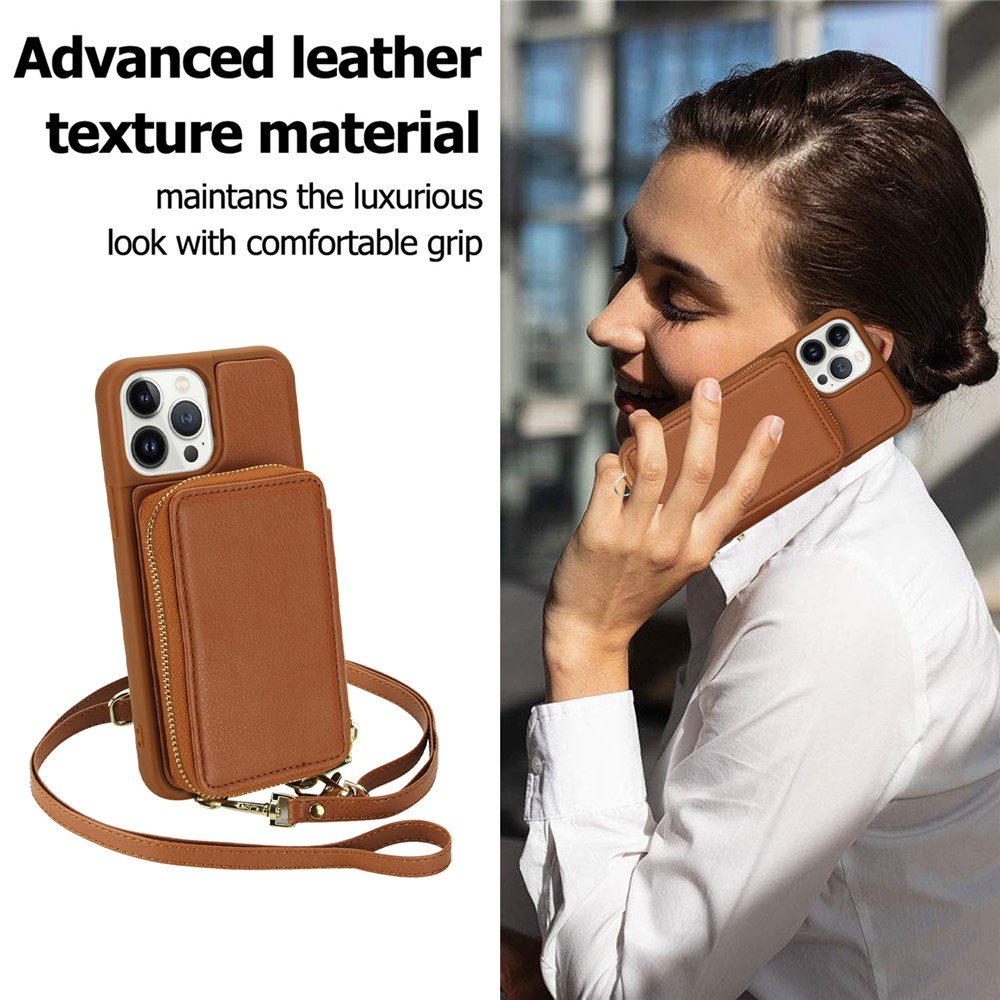 - 2-in-1 Crossbody Wallet Case Combines a phone case and zip wallet design, allowing you to carry cards, cash, and your phone together in one stylish accessory.