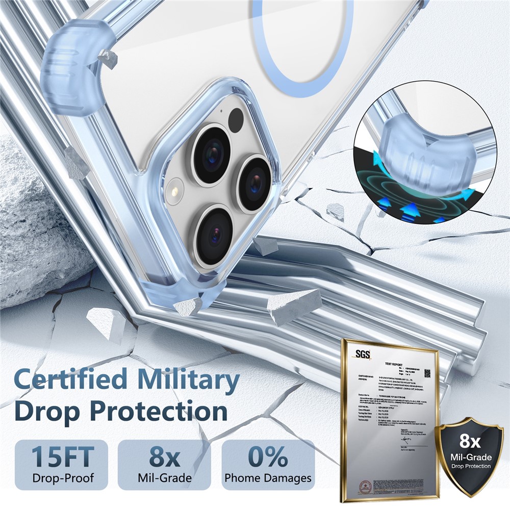 - Military-Grade Drop Protection Reinforced air-cushion corners effectively absorb shocks, provide 15FT drop resistance and SGS-certified protection.