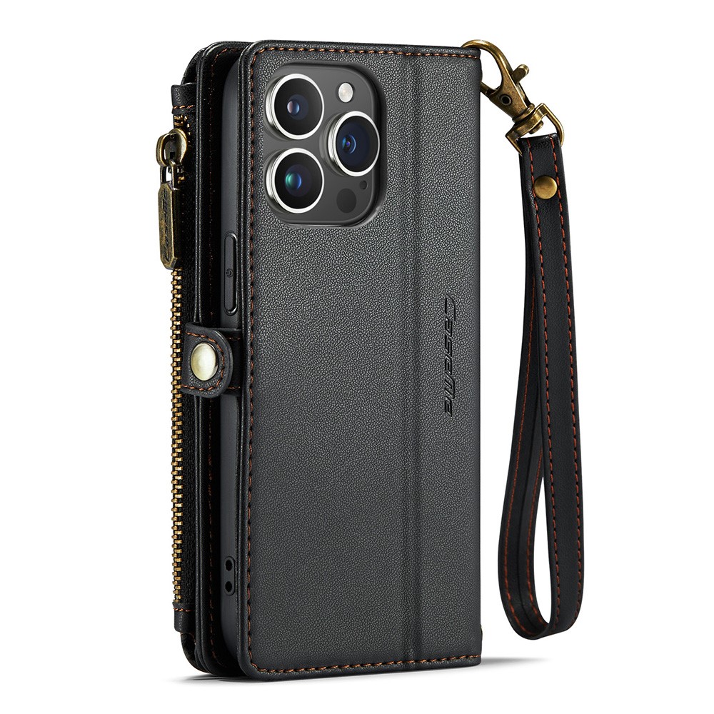 For iPhone 13 Pro Leather Case CASEME C36 Zipper Multiple Card Slots Phone Cover with Straps – Black