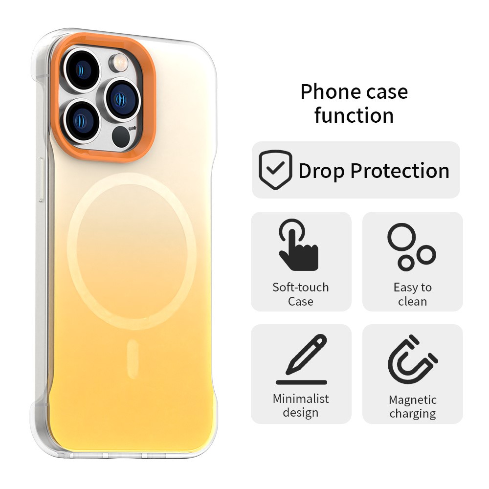 For iPhone 13 Pro Magnetic Case Gradient Design Borderless IMD TPU + PC + PET Phone Cover - Orange $13.53