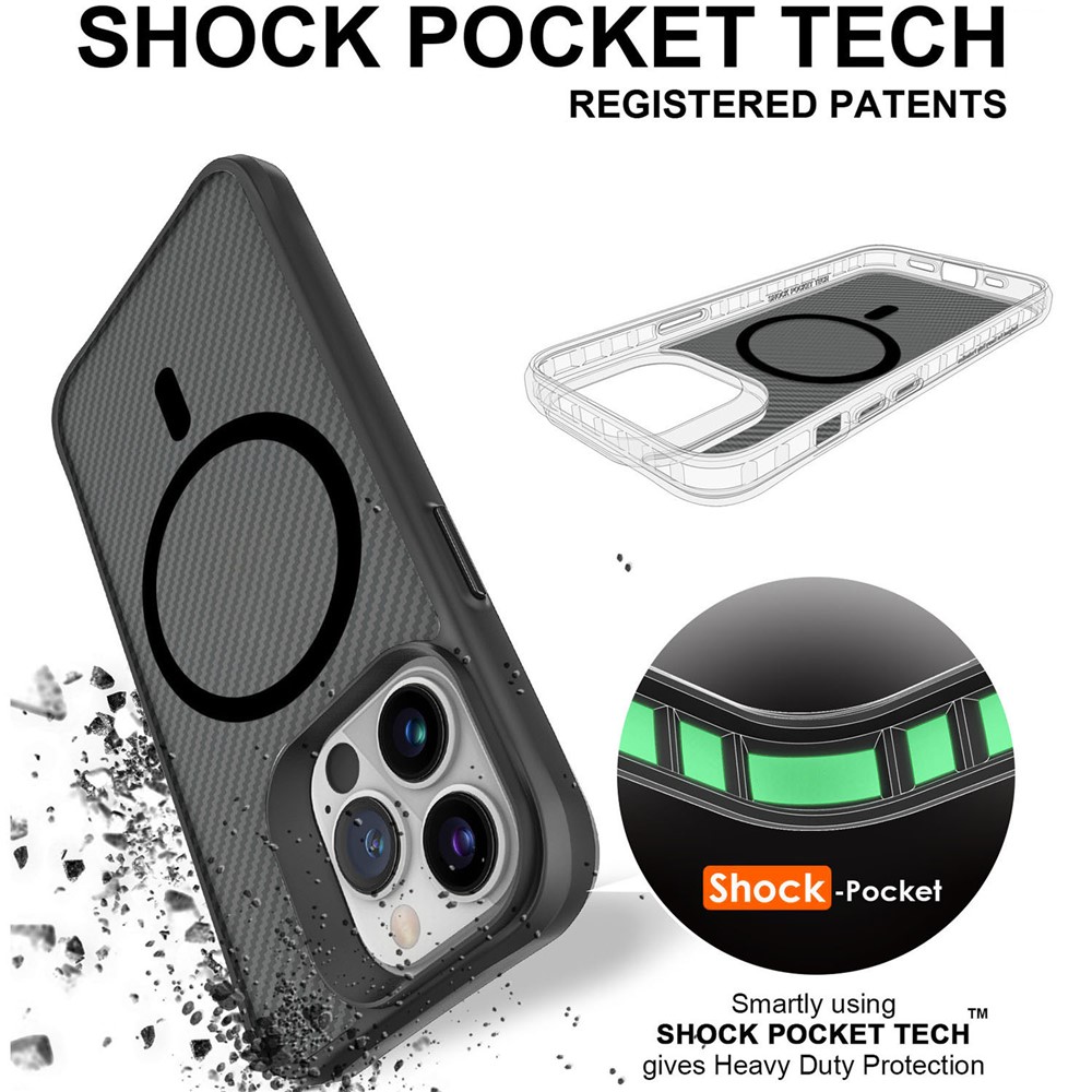 For iPhone 13 Pro Magnetic Case PC+TPU Carbon Fiber Texture Back Cover – Black