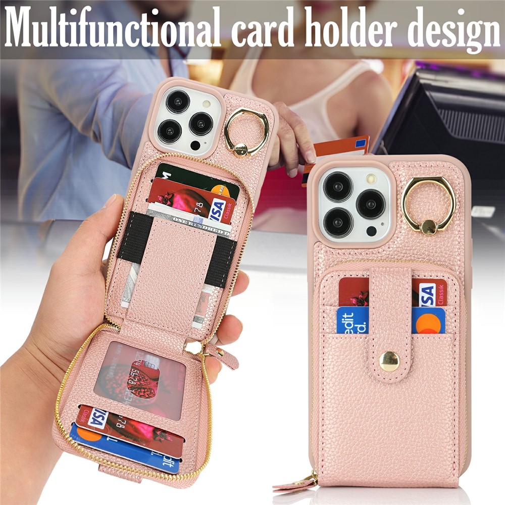 - Zipper Pouch with Card Slots Built-in zipper pocket includes multiple card slots, providing secure storage for transit cards, bank cards, or cash for on-the-go convenience
