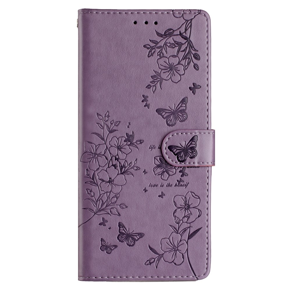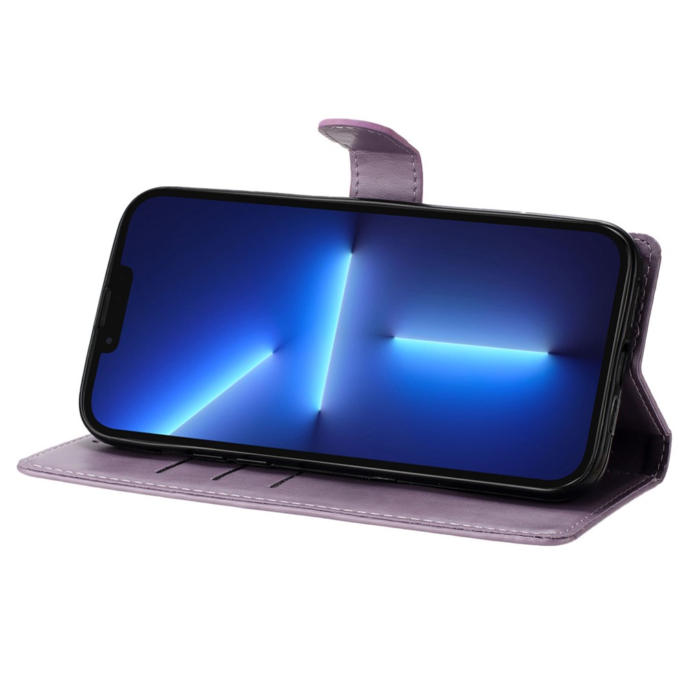 For iPhone 13 Pro Max Case Butterfly Floral Imprint Leather Phone Cover with Wallet - Purple