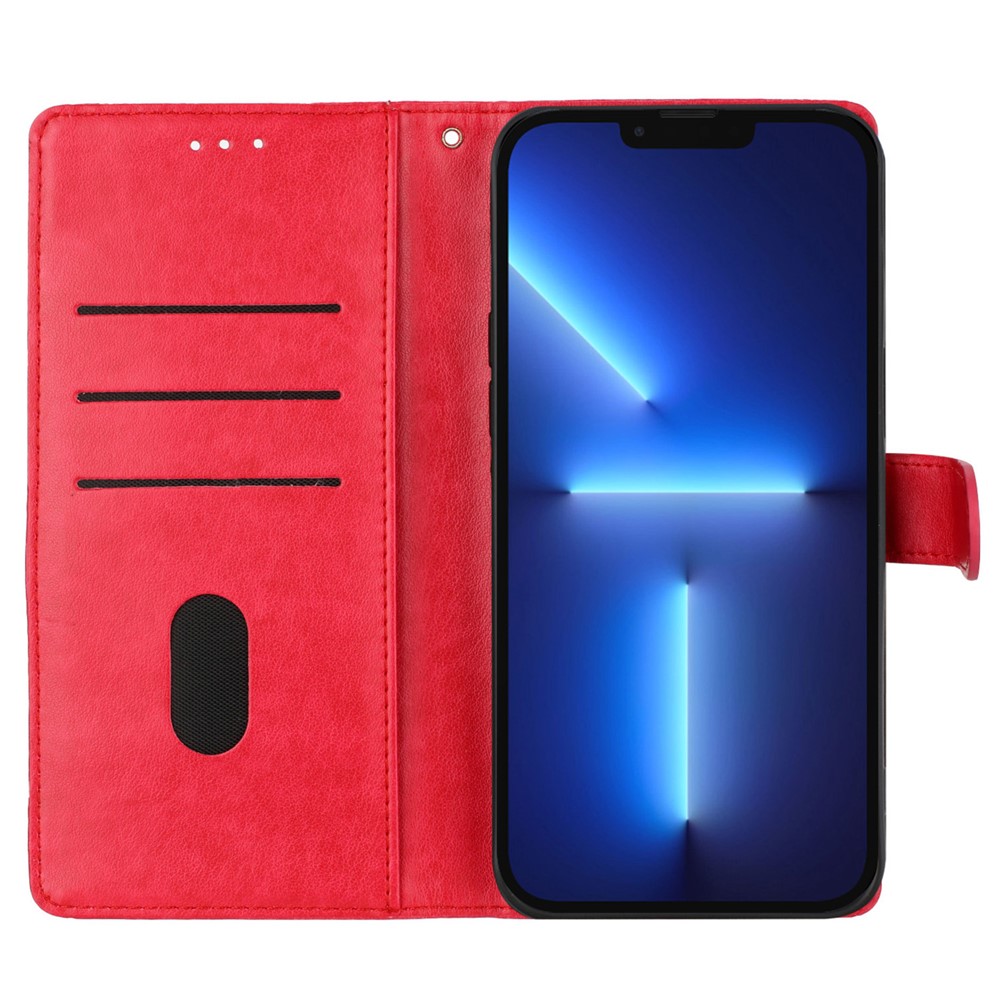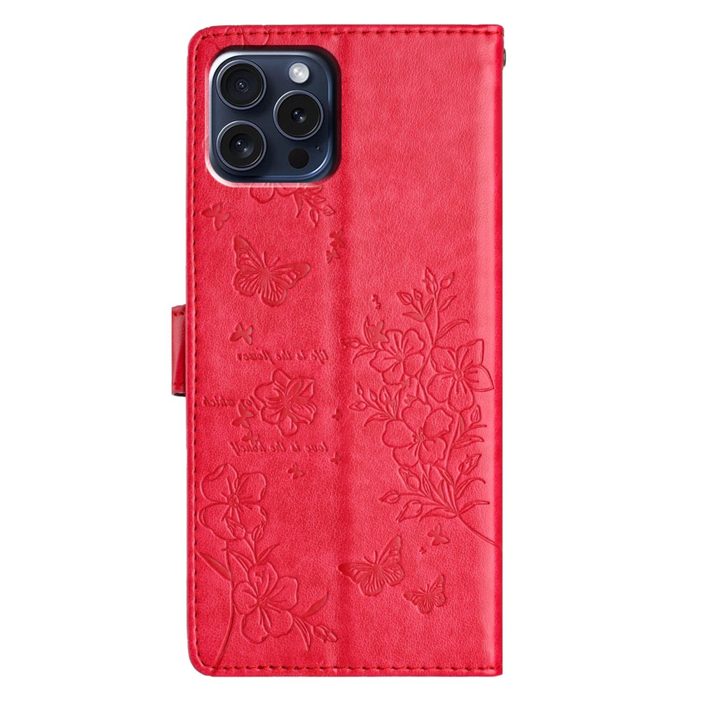For iPhone 13 Pro Max Case Butterfly Floral Imprint Leather Phone Cover with Wallet – Red