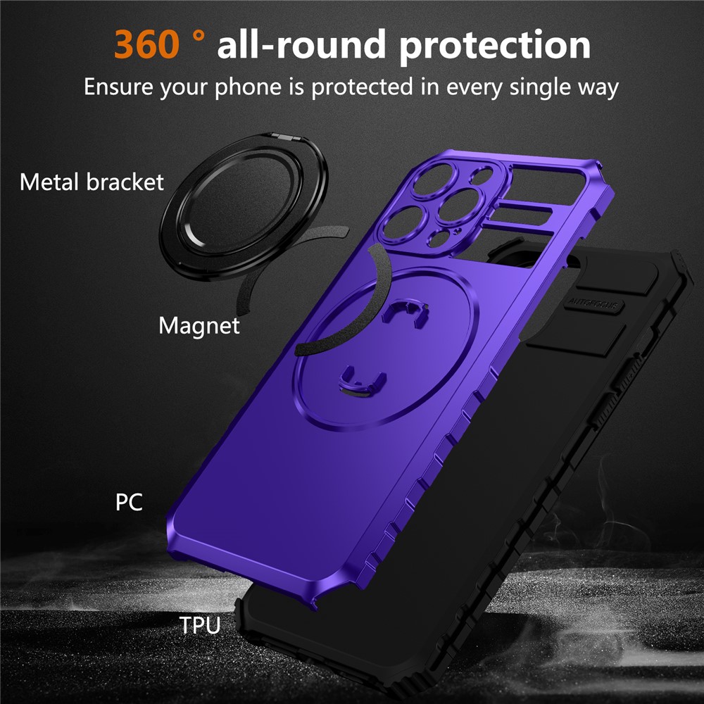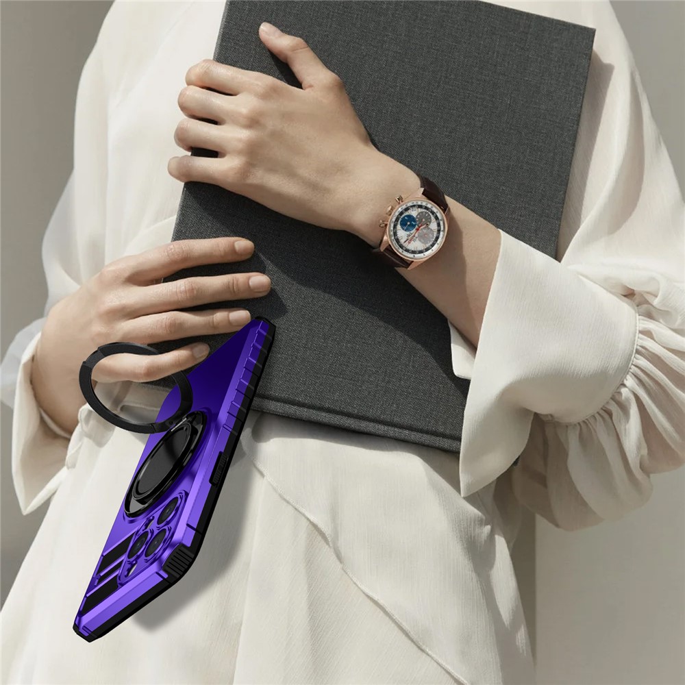 For iPhone 13 Pro Max Case Compatible with MagSafe Rotary Kickstand Anti-Drop TPU+PC Phone Cover – Purple