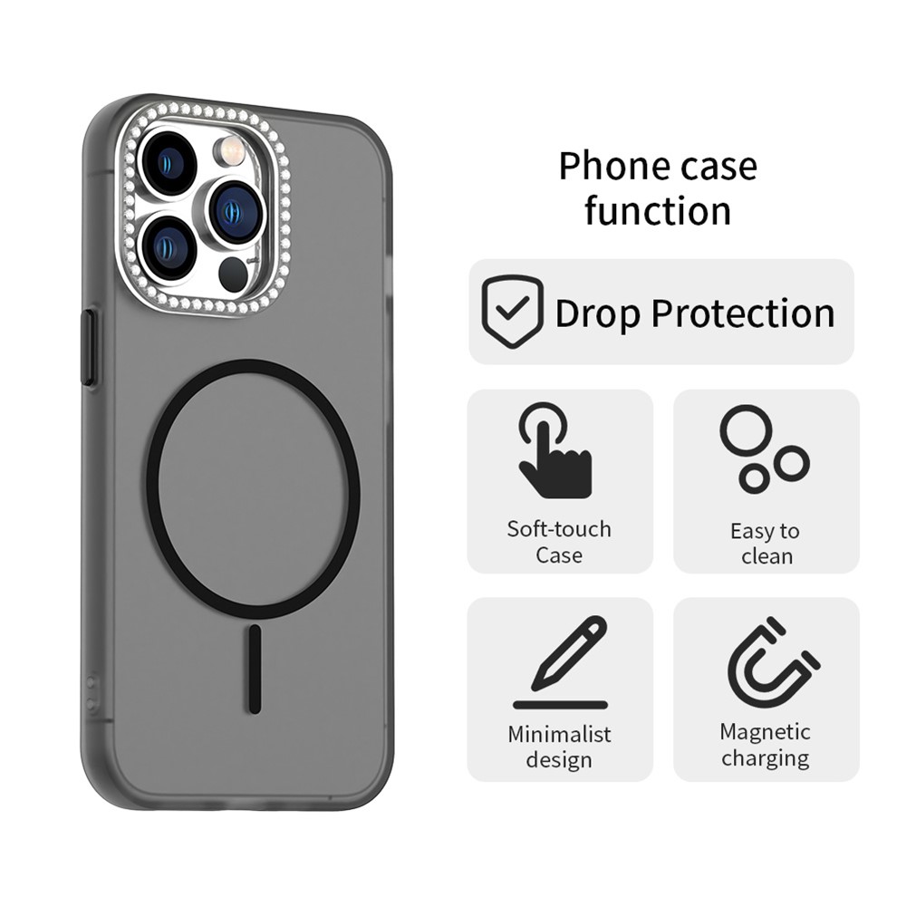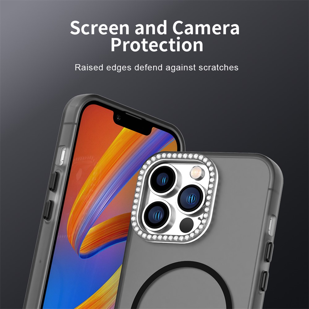 - Elegant Rhinestone Lens Frame Decorated with sparkling rhinestones around the camera lens frame for a touch of glamour and added lens protection