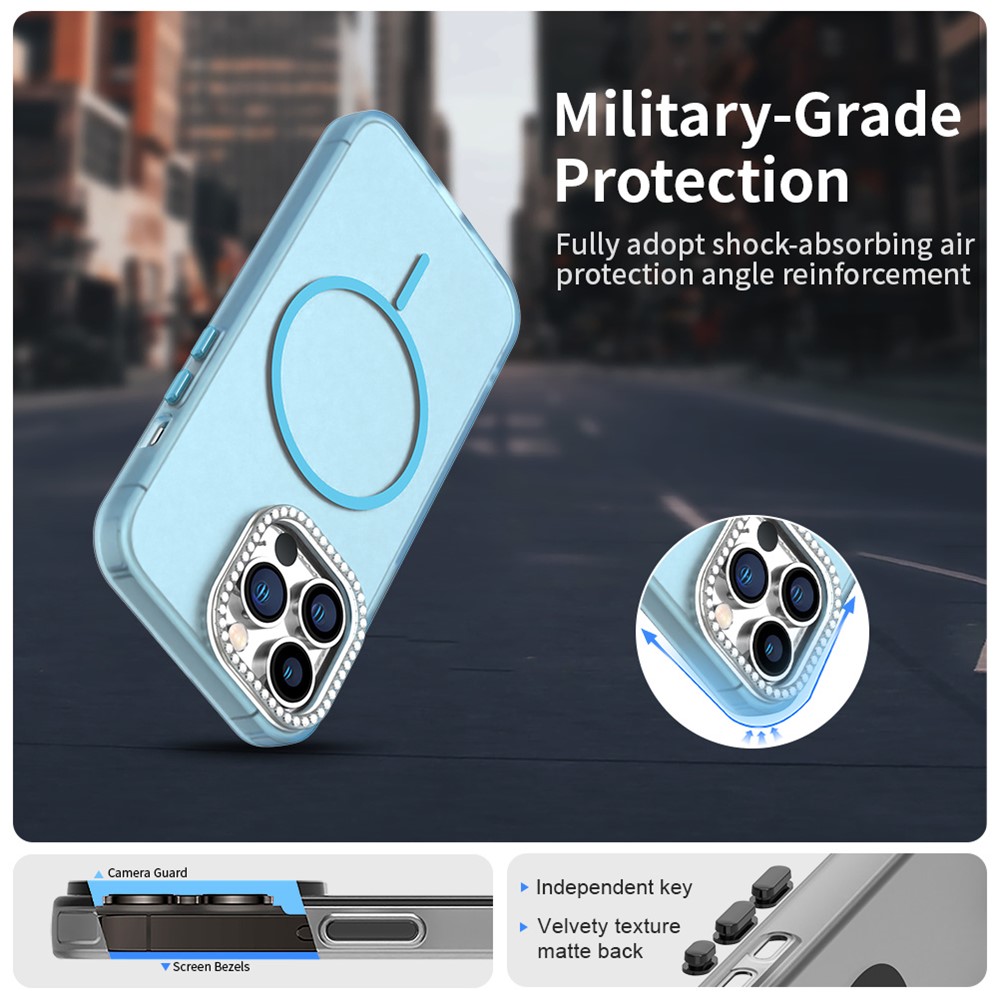 - Elegant Rhinestone Lens Frame Decorated with sparkling rhinestones around the camera lens frame for a touch of glamour and added lens protection