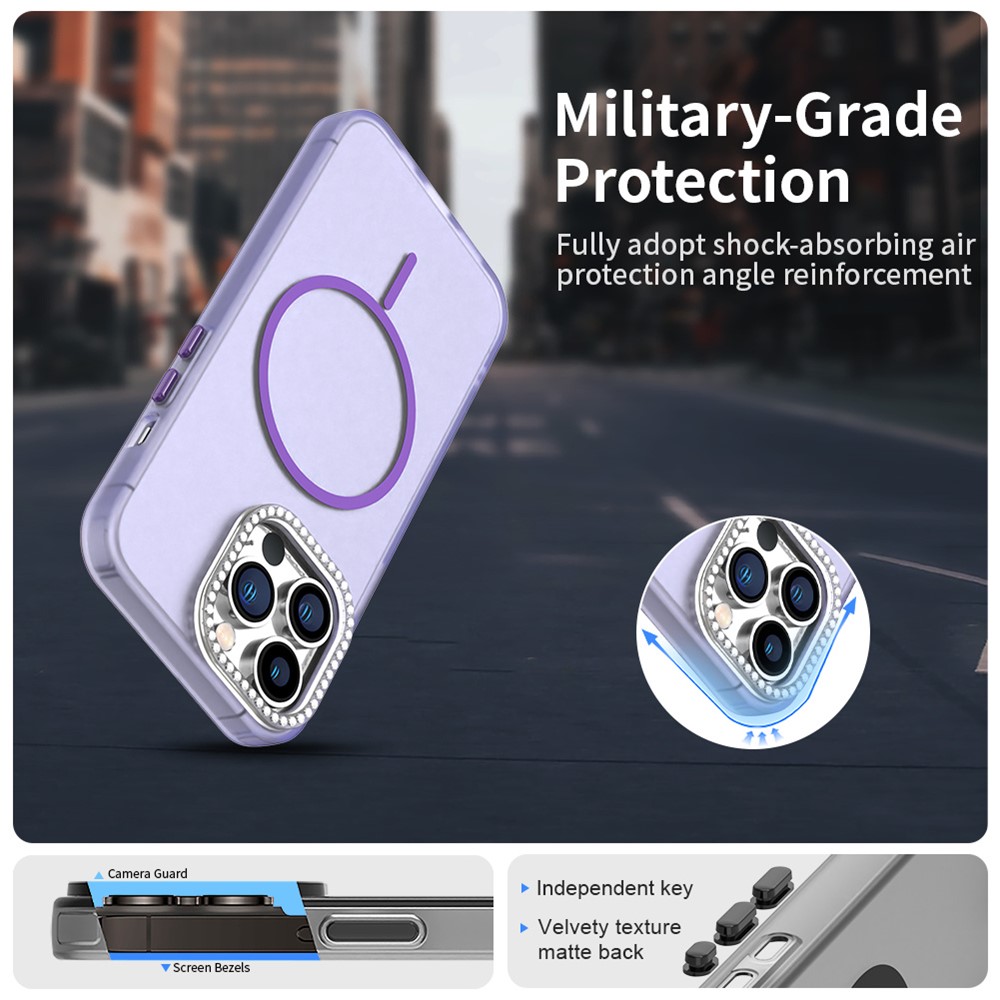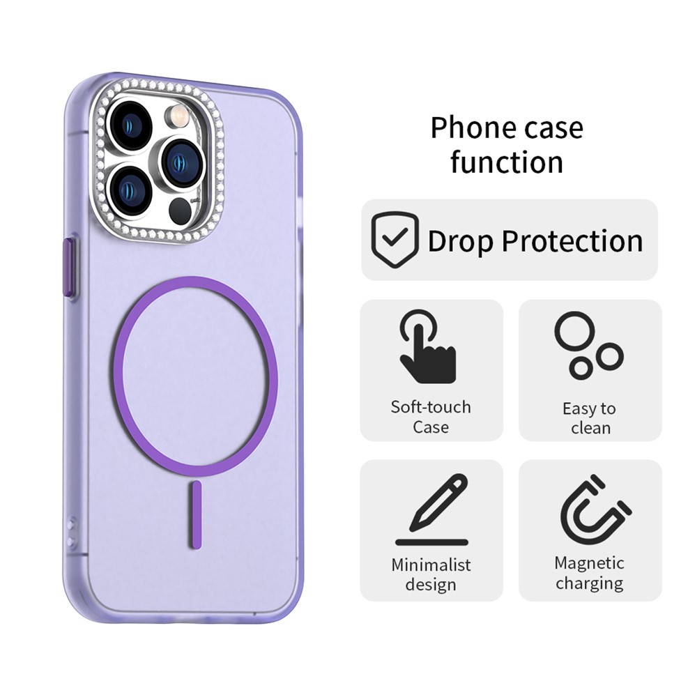 - Elegant Rhinestone Lens Frame Decorated with sparkling rhinestones around the camera lens frame for a touch of glamour and added lens protection