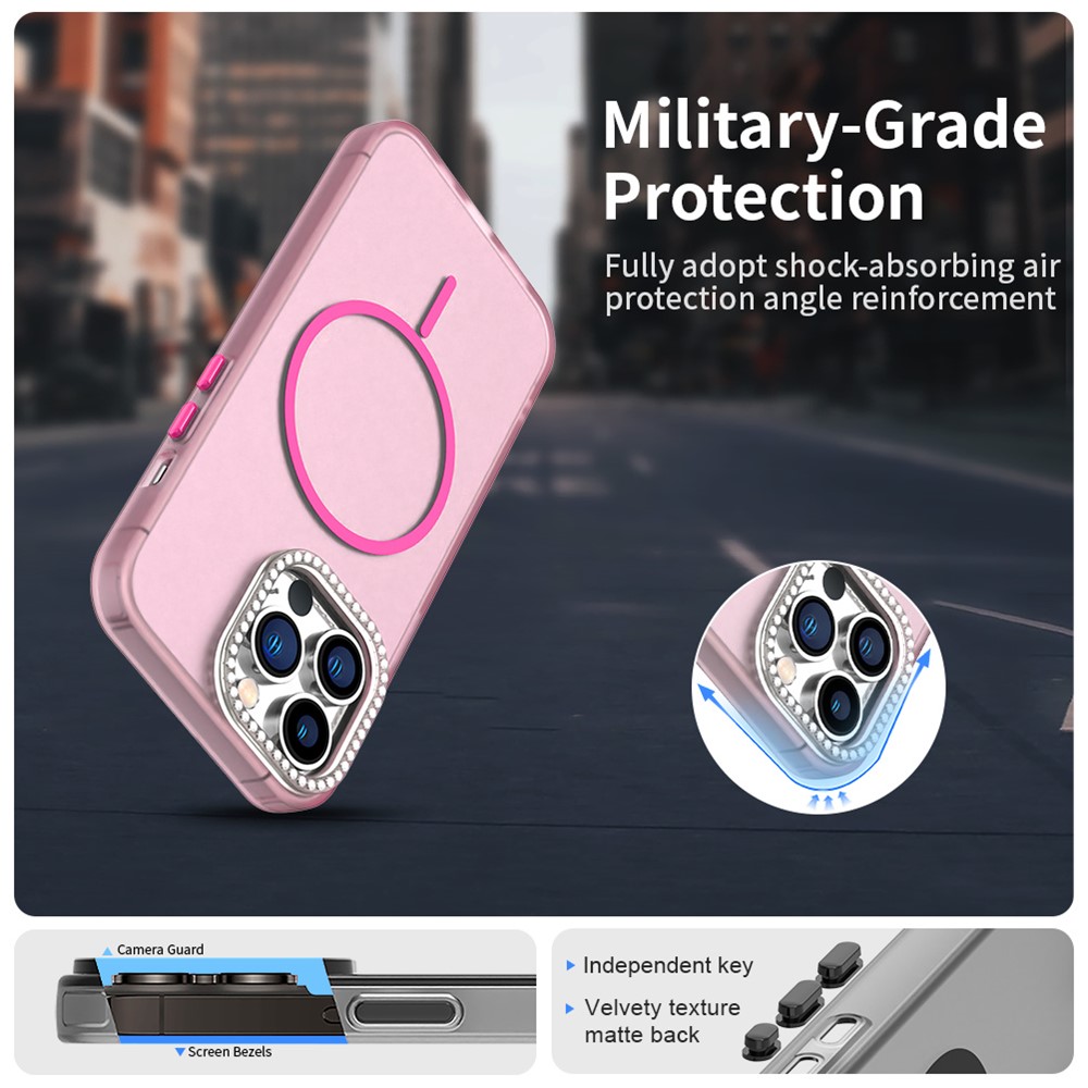 - Elegant Rhinestone Lens Frame Decorated with sparkling rhinestones around the camera lens frame for a touch of glamour and added lens protection