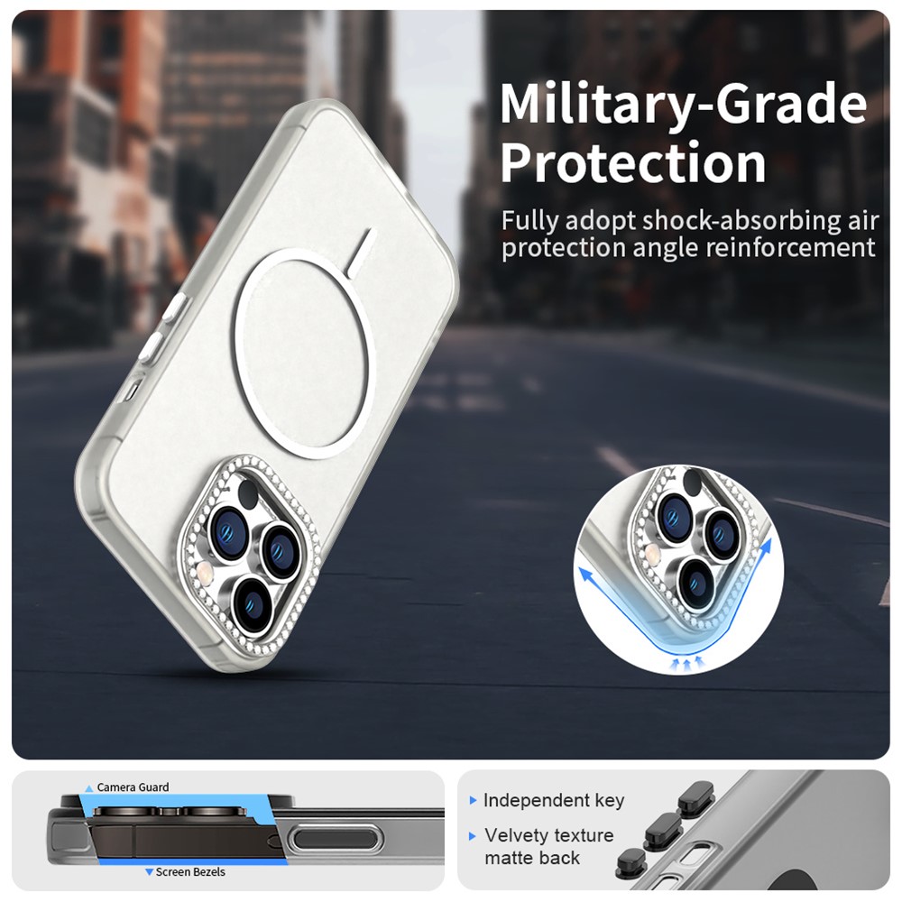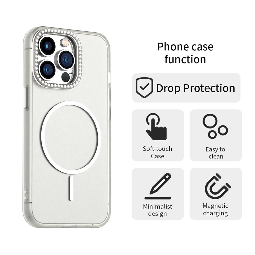 - Elegant Rhinestone Lens Frame Decorated with sparkling rhinestones around the camera lens frame for a touch of glamour and added lens protection