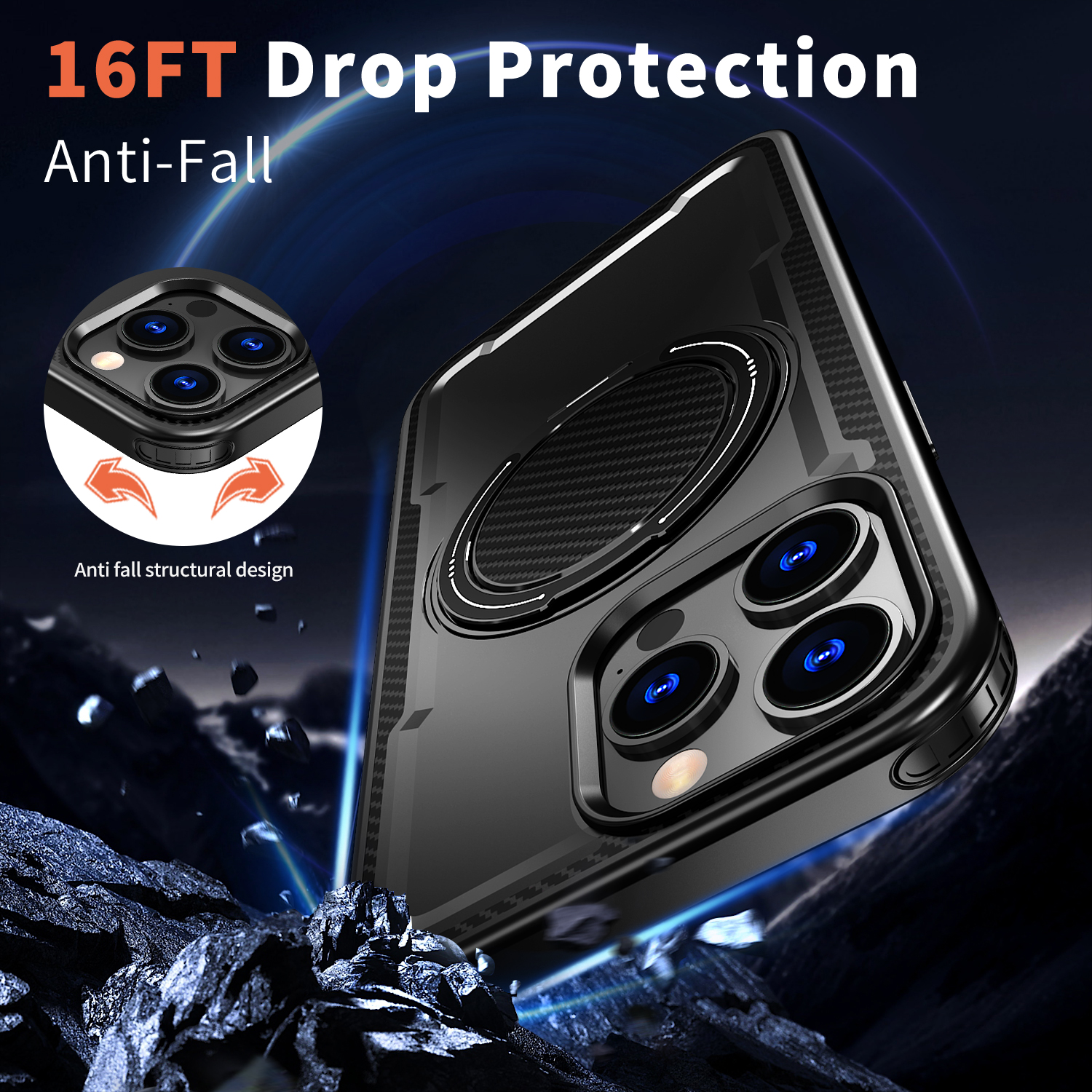 For iPhone 13 Pro Max Case Compatible with MagSafe TPU + PC Phone Cover with Damping Rotating Stand – Black