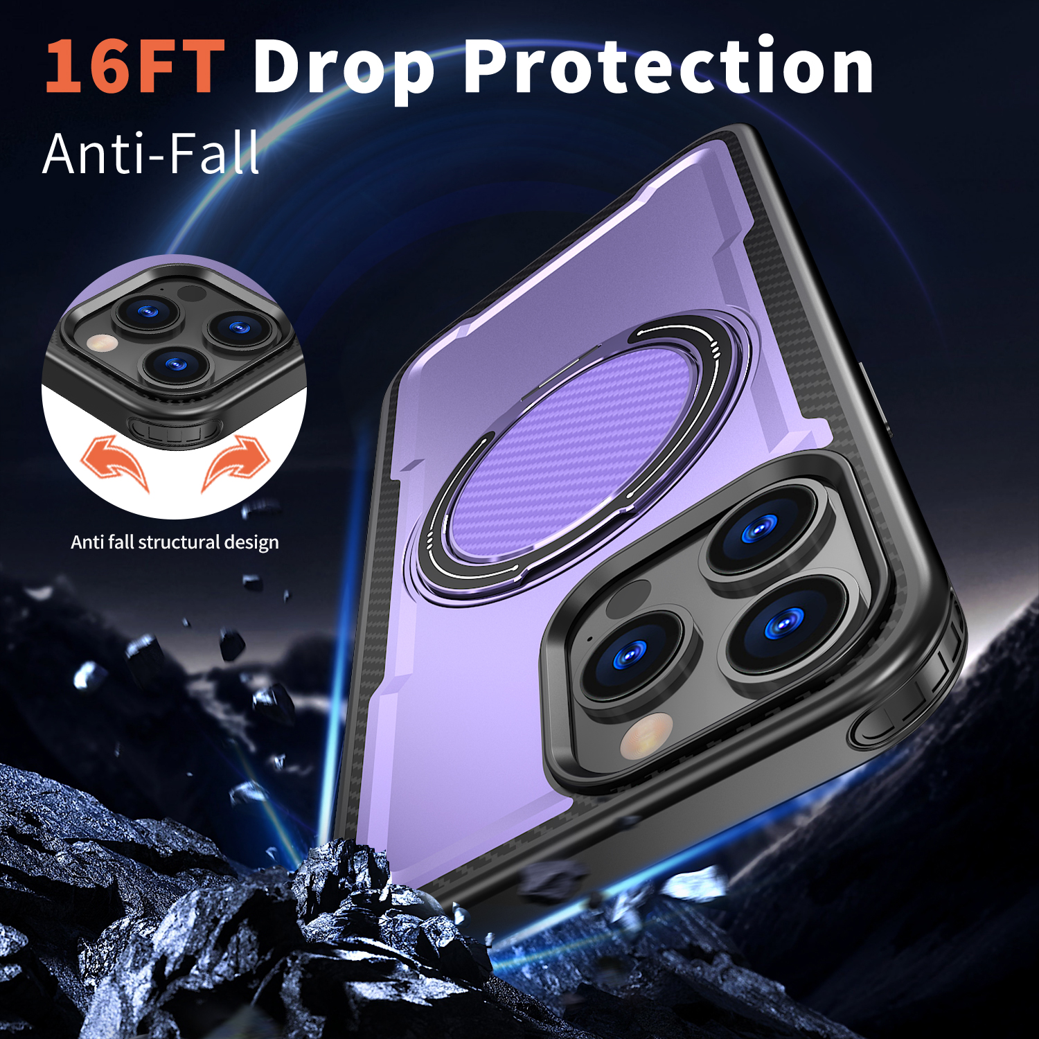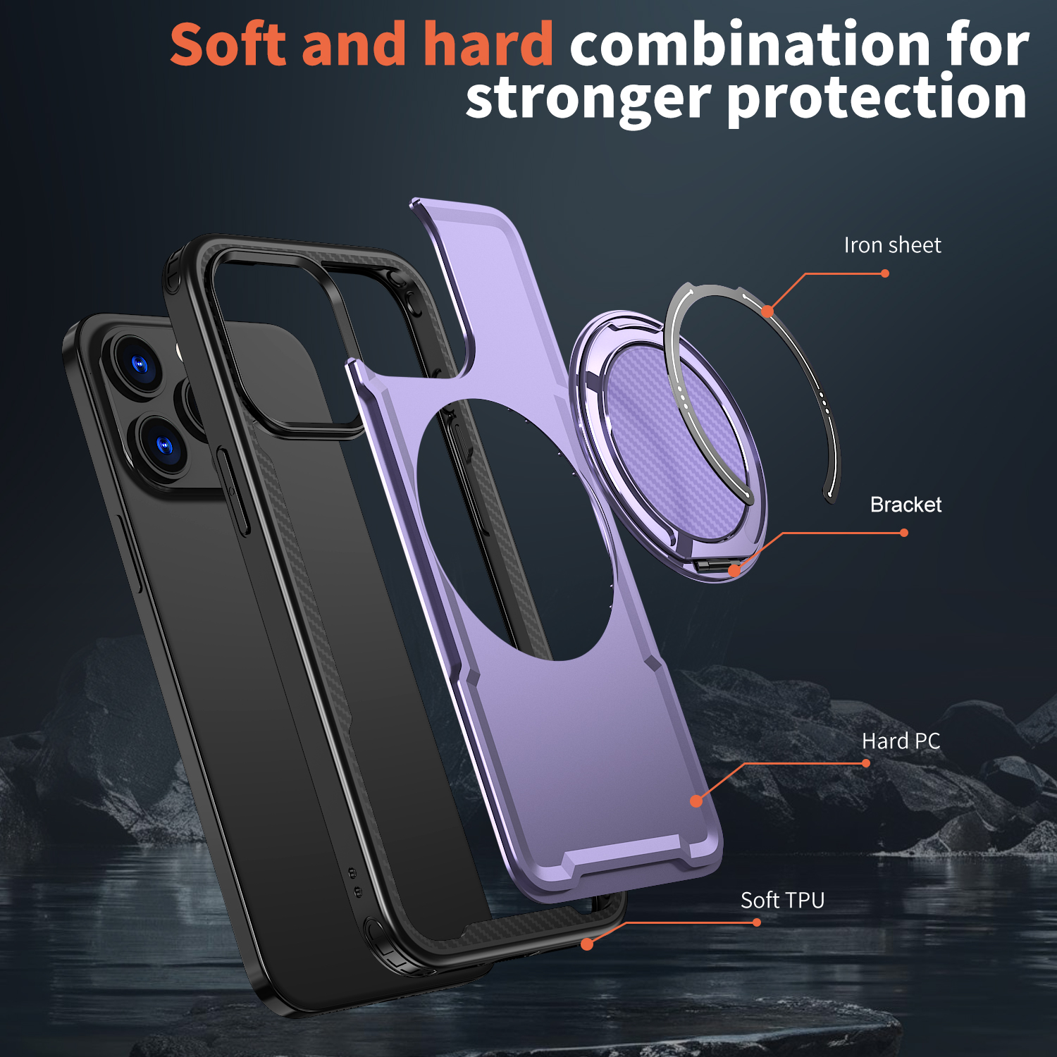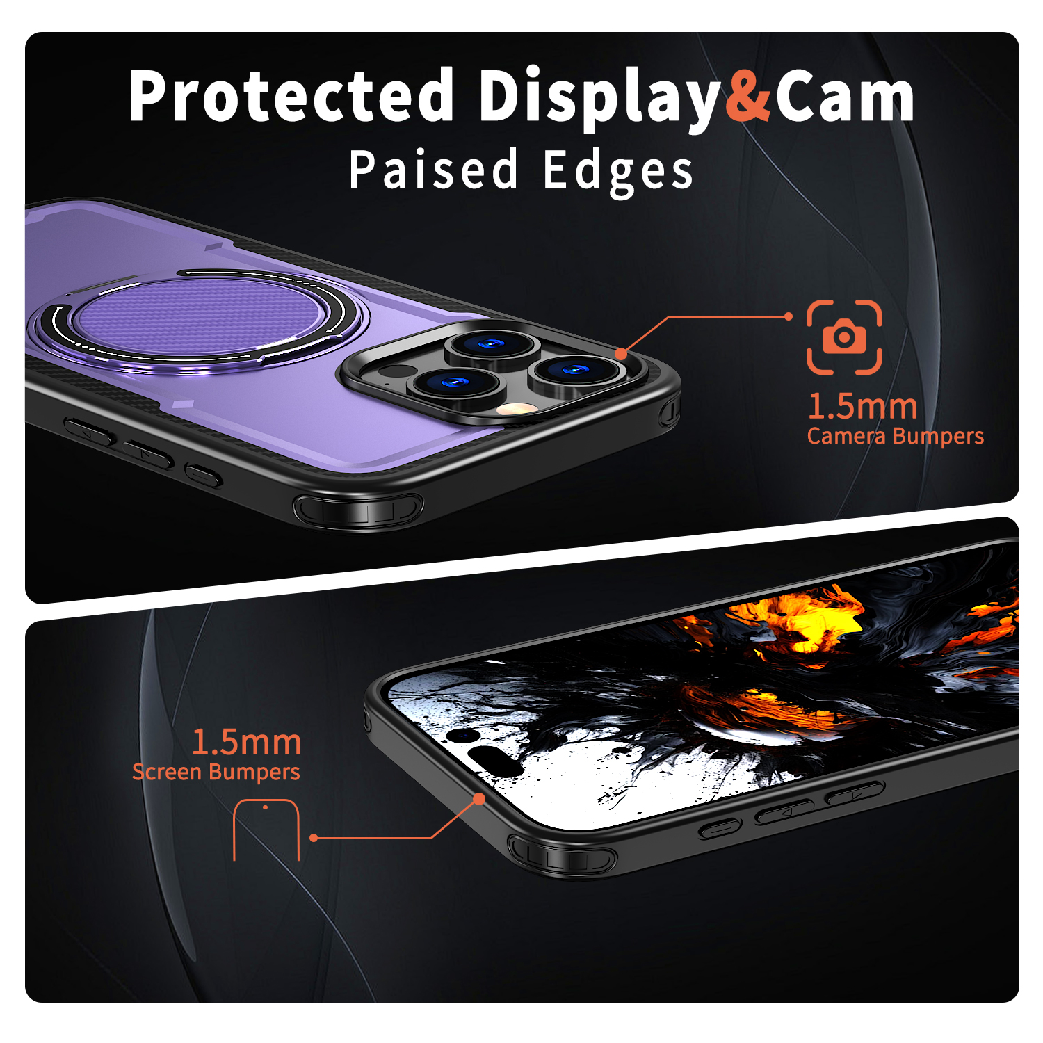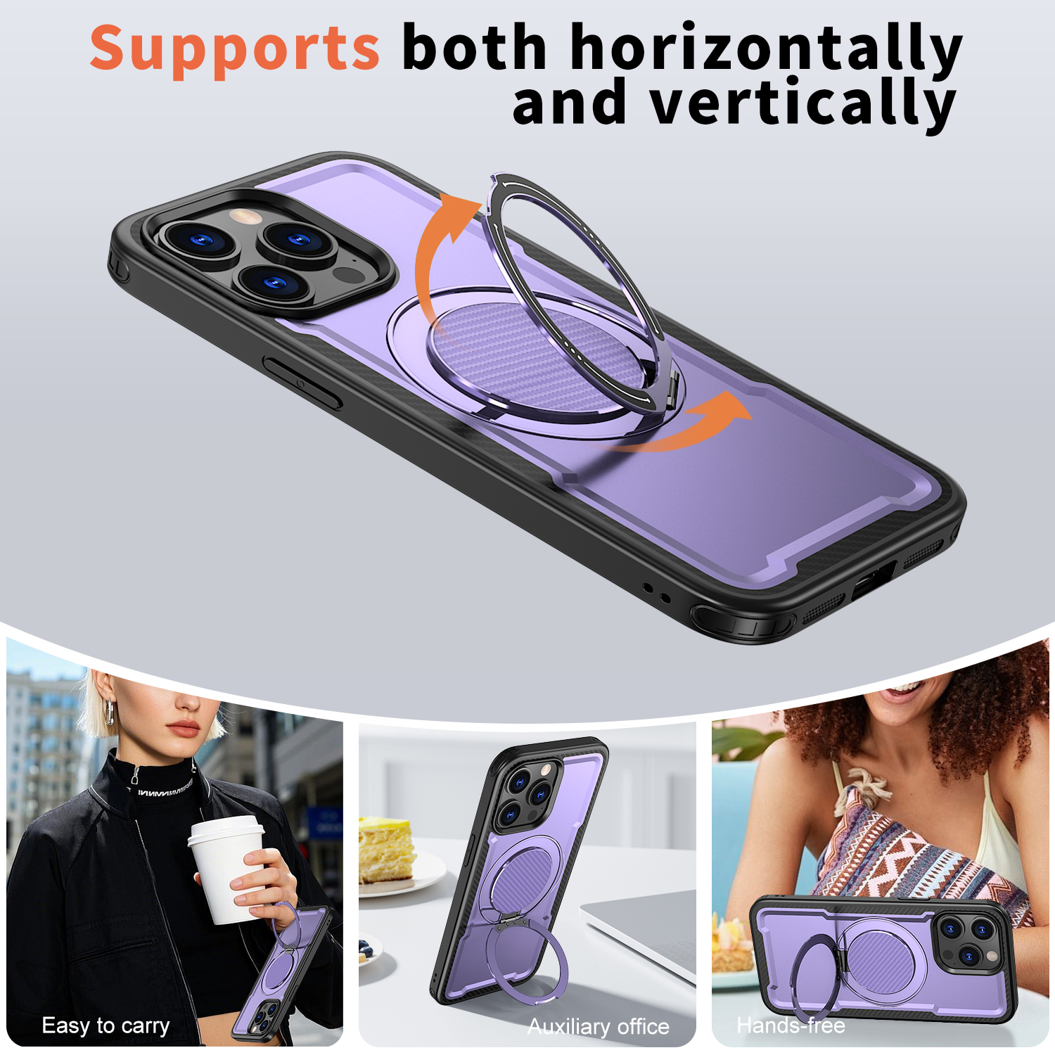 For iPhone 13 Pro Max Case Compatible with MagSafe TPU + PC Phone Cover with Damping Rotating Stand – Purple