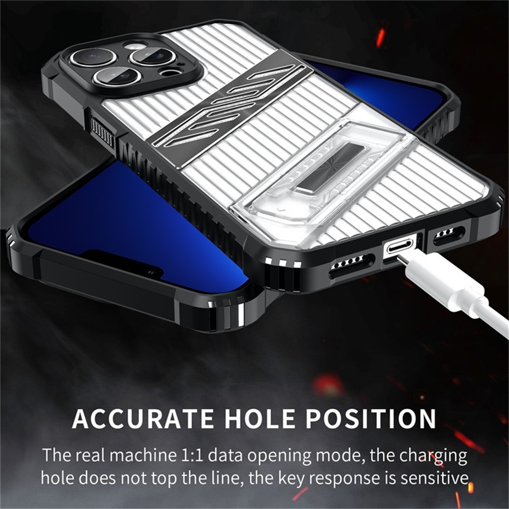 • For iPhone 13 Pro Max Case Folding Kickstand PC + TPU Anti Drop Phone Cover - Transparent Black