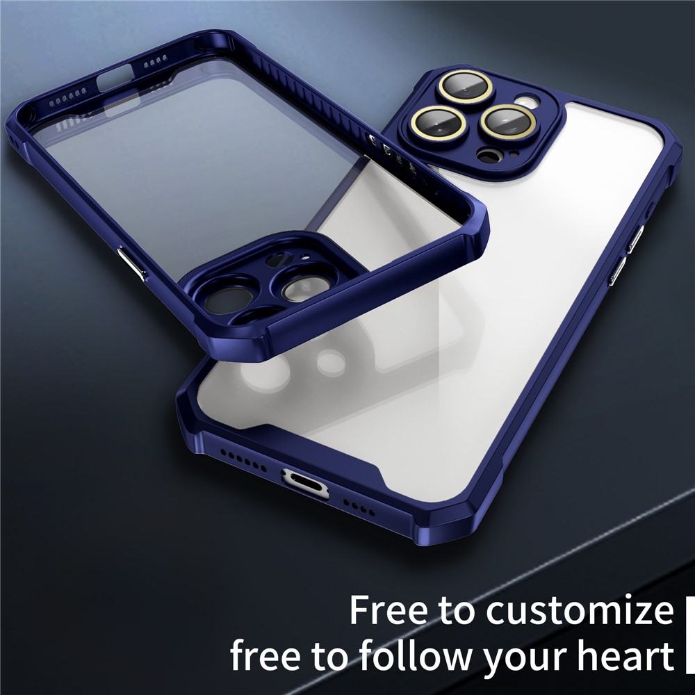 For iPhone 13 Pro Max Case Scratch Resistant Acrylic+TPU Phone Cover with Glass Lens Film - Blue $13.79