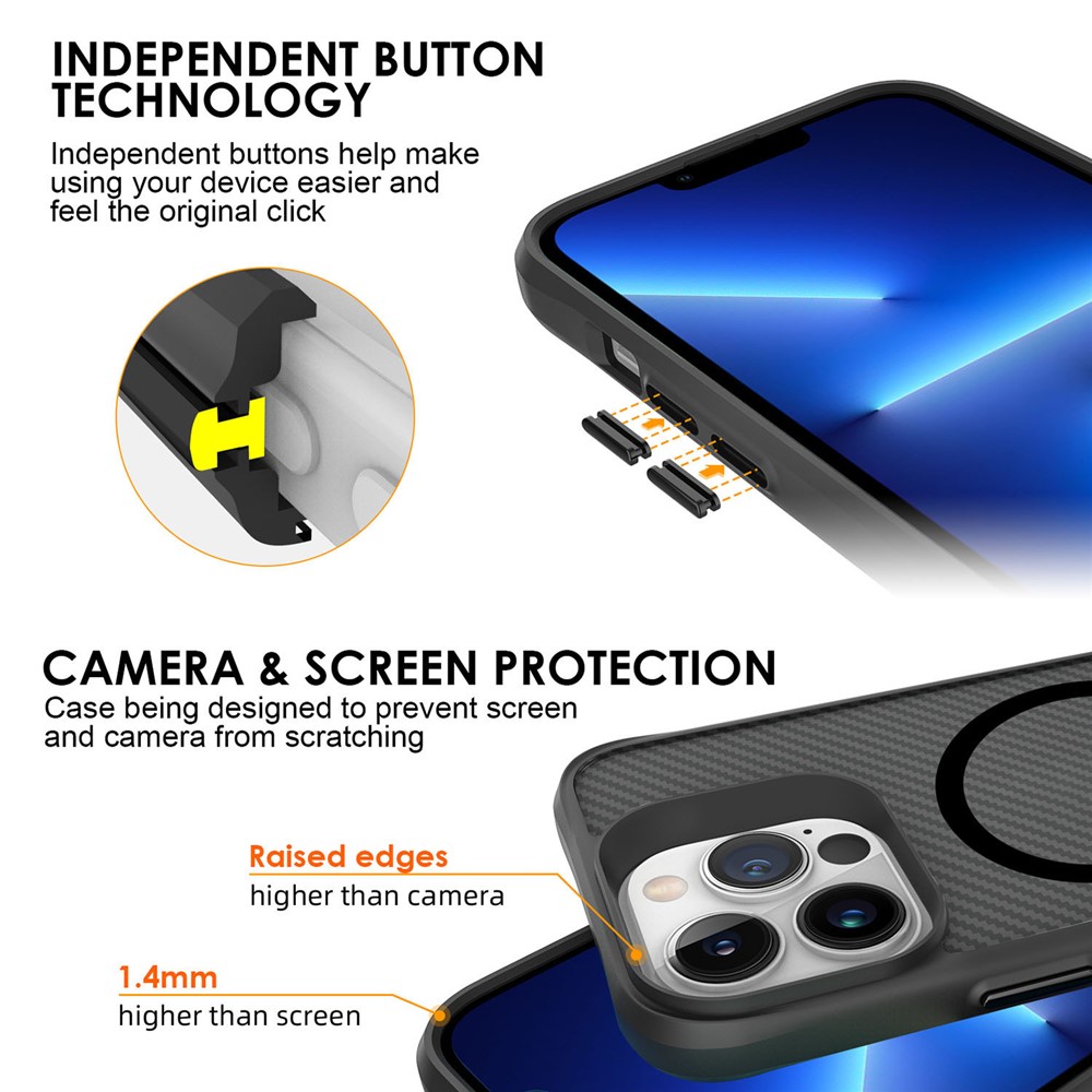 - Carbon Fiber Texture The case features a micro-embossed carbon fiber texture, offering a smooth and luxurious touch while enhancing the overall aesthetic of your phone