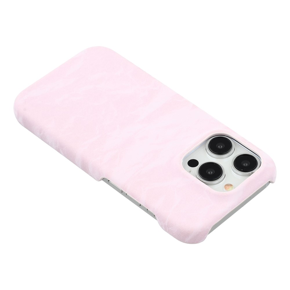 For iPhone 13 Pro Max Case Velvet Texture Leather + PC Phone Back Cover - Pink