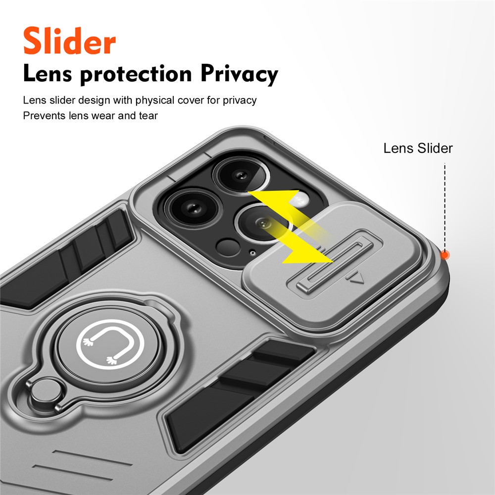 - Lens Protection Slider The case features a unique sliding cover over the camera lens, designed to shield the lens from scratches and provide extra privacy when needed