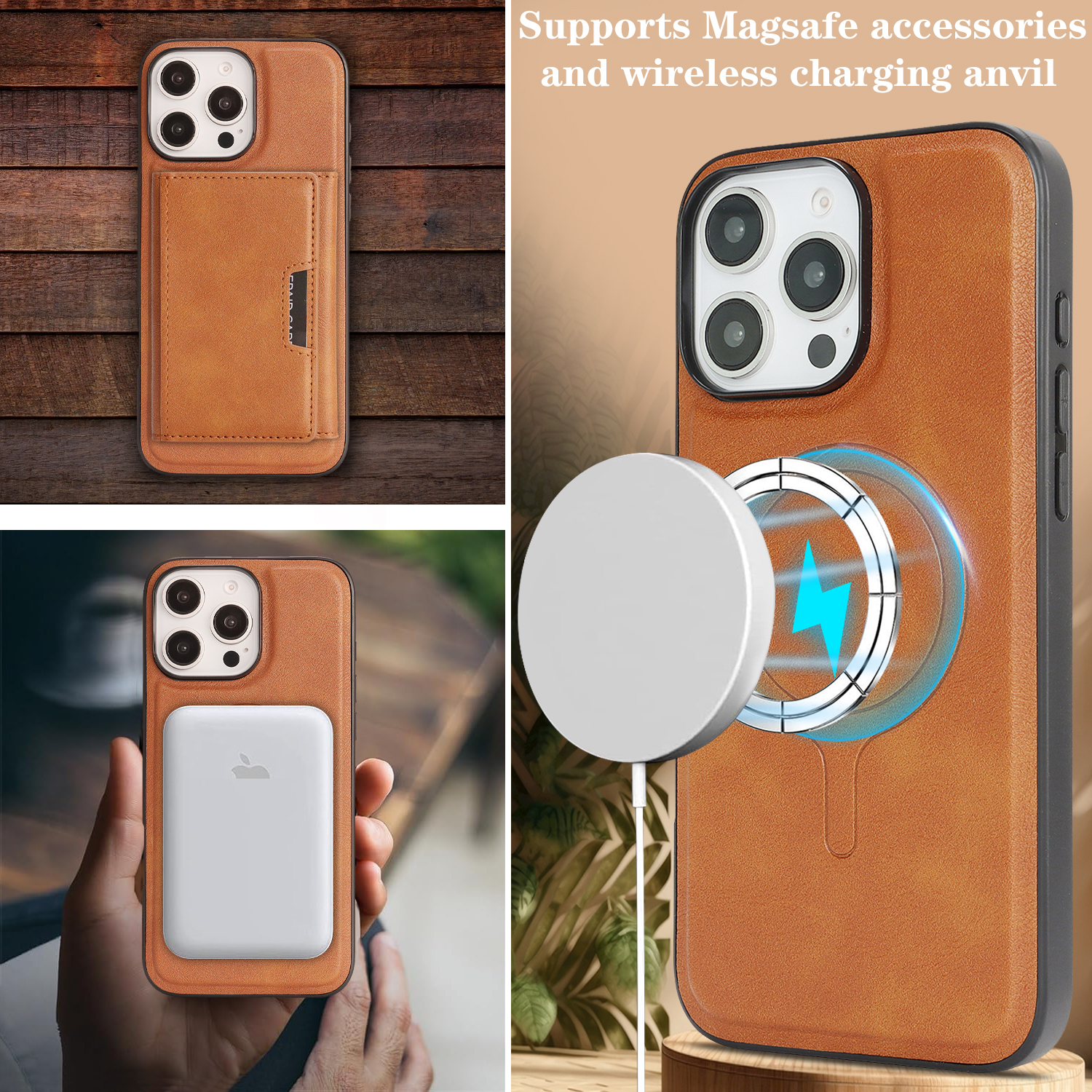 - MagSafe Compatible Supports for MagSafe accessories and wireless charging, featuring a minimalist magnetic leather bi-fold design with card holder functionality.