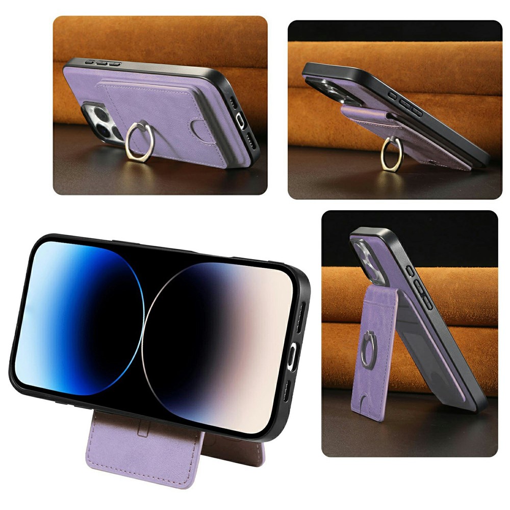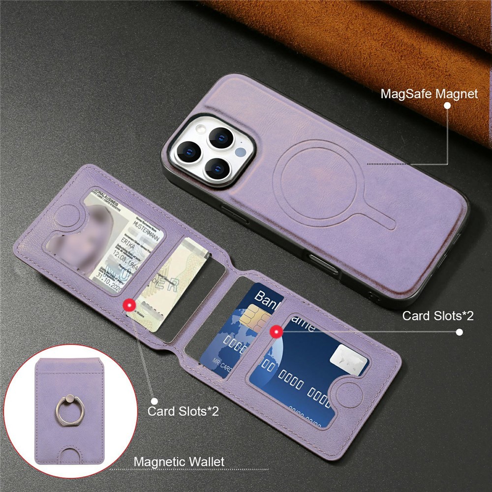 For iPhone 13 Pro Max Magnetic Case PC + PU Phone Back Cover with Detachable Card Holder – Purple