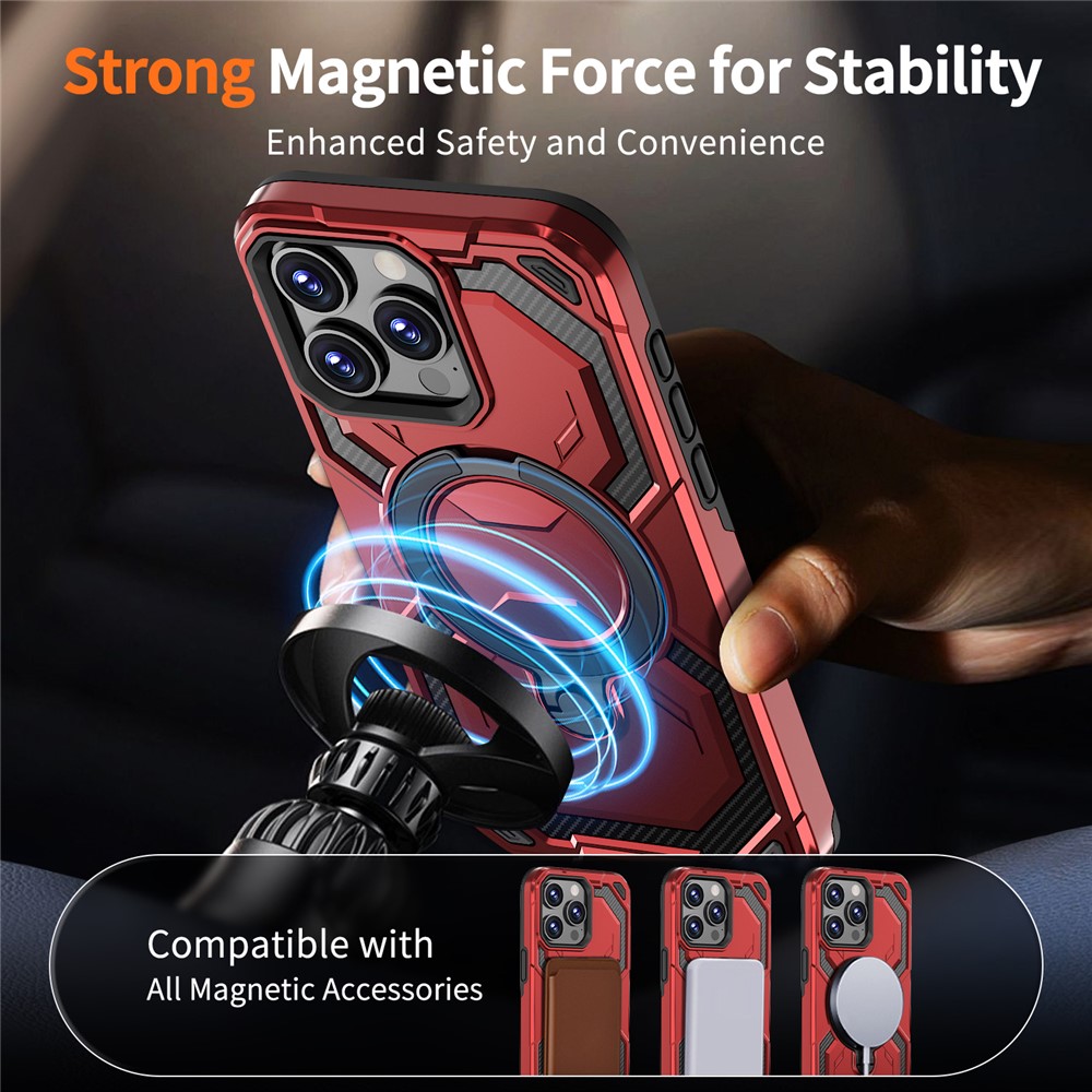 - Magnetic Ring Kickstand Features a magnetic ring kickstand for easy one-handed operation and doubles as a convenient phone kickstand for desktop or in-car use, enhancing versatility.