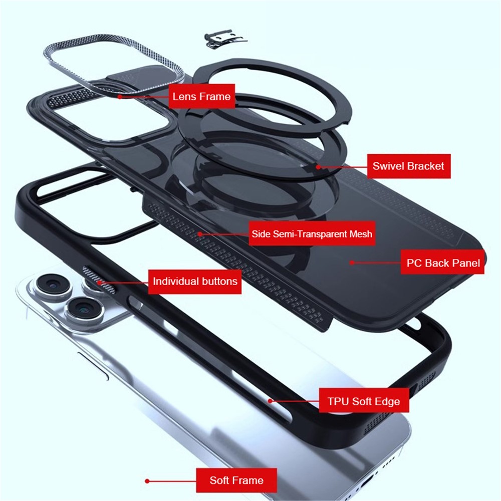 - Semi-Transparent Frame with Ventilation: The case’s borders are semi-transparent and equipped with air holes to prevent overheating and provide a sleek, modern look